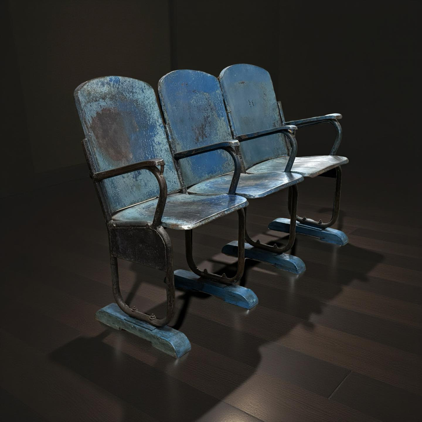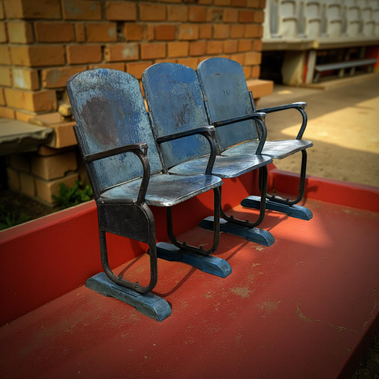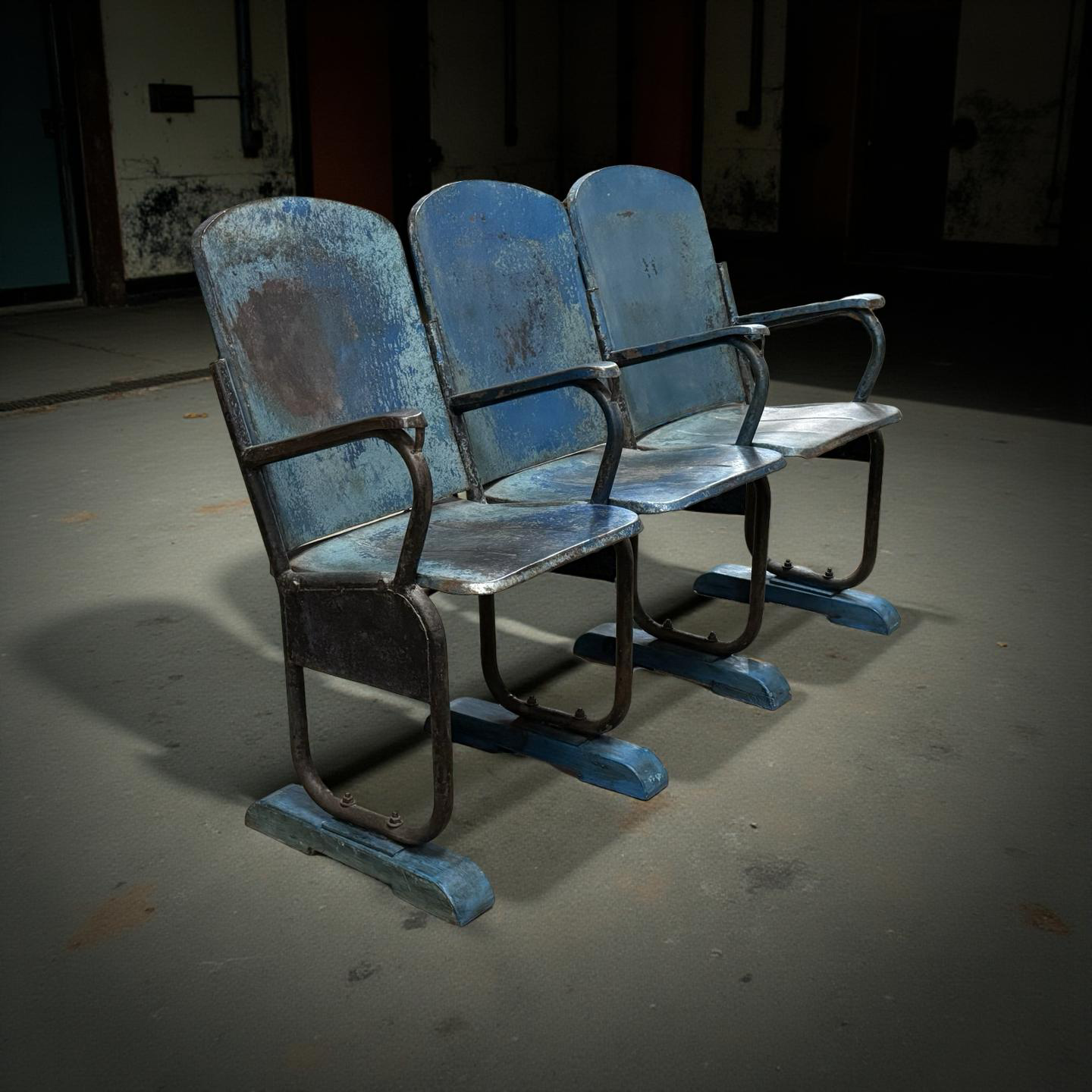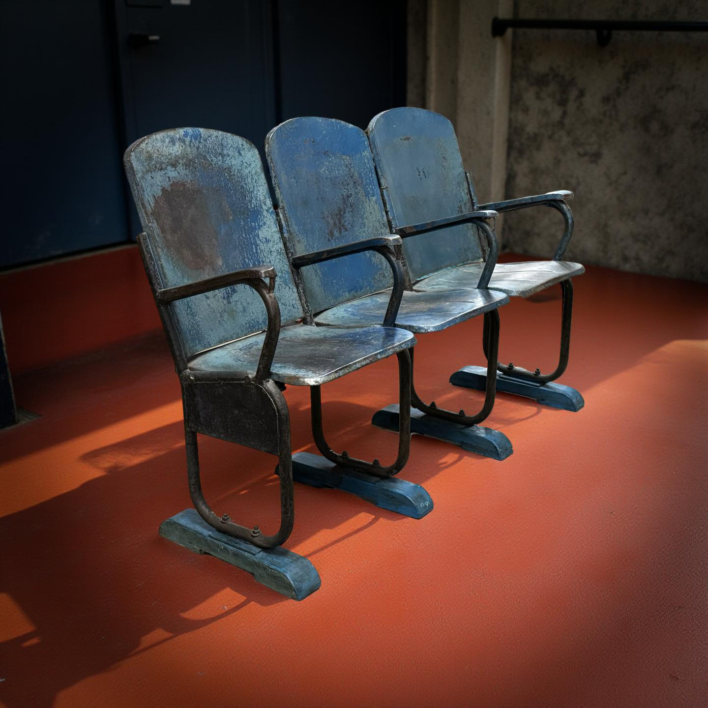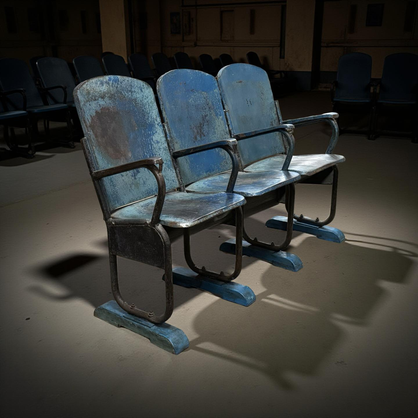 Bioscoopstoel ijzer blauw/grijs (3zits)