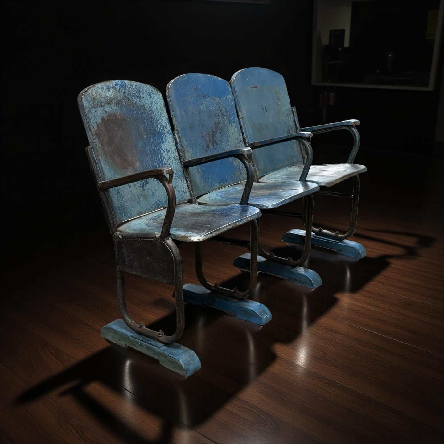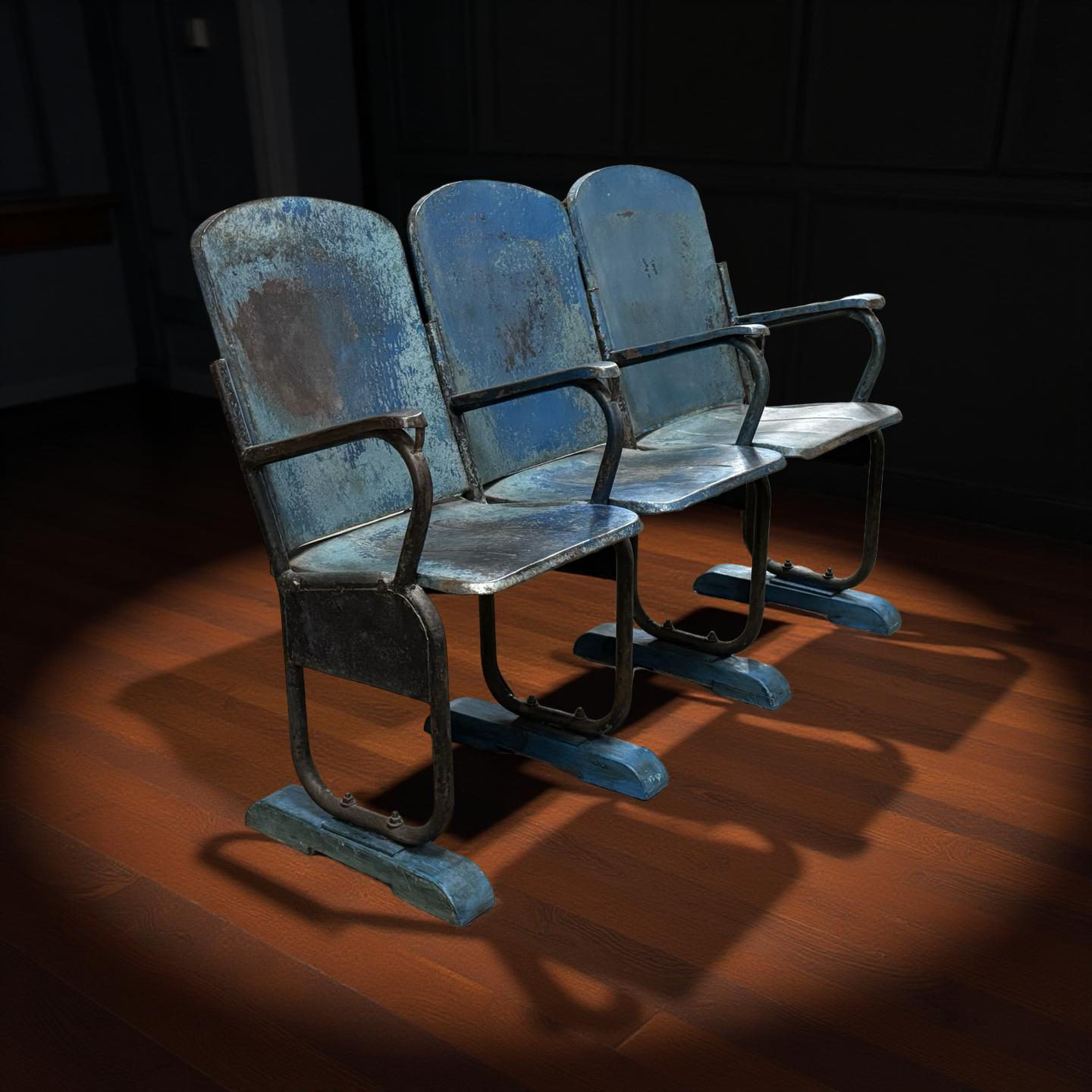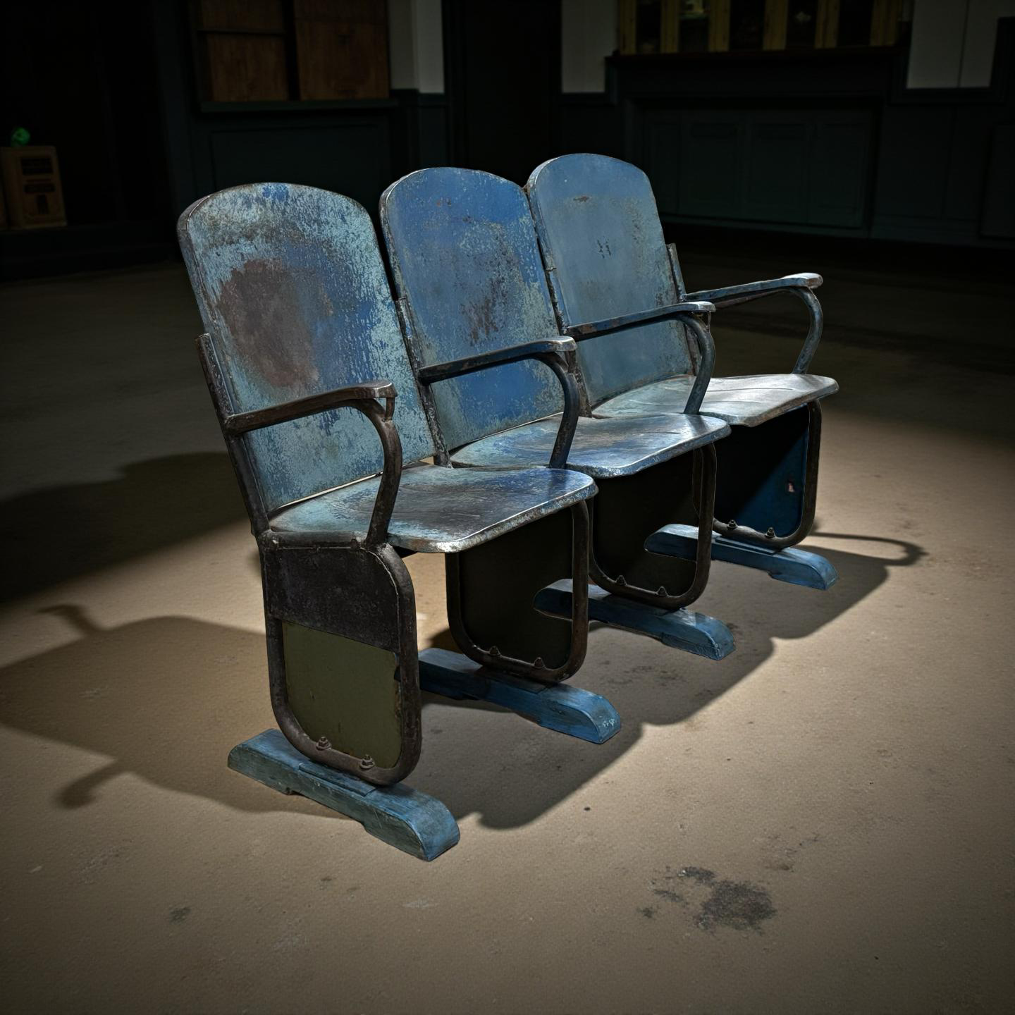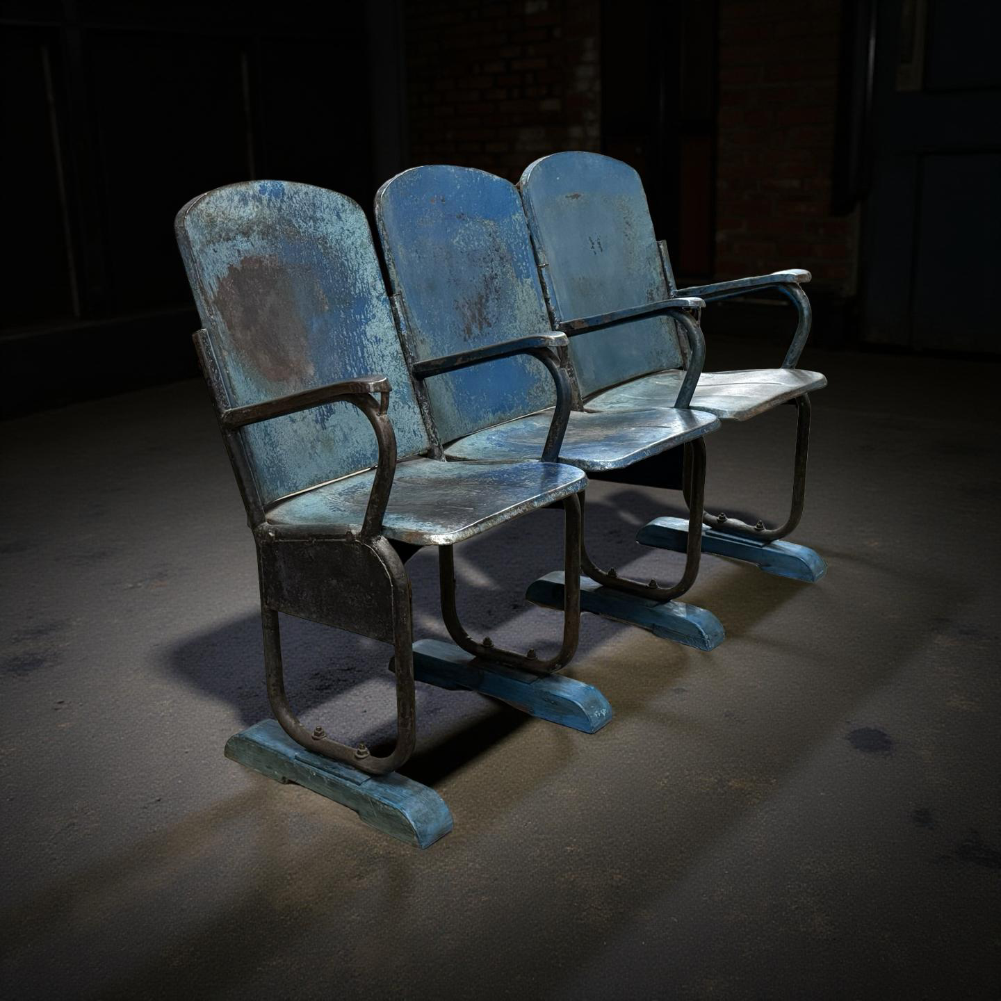 Bioscoopstoel ijzer blauw/grijs (3zits)