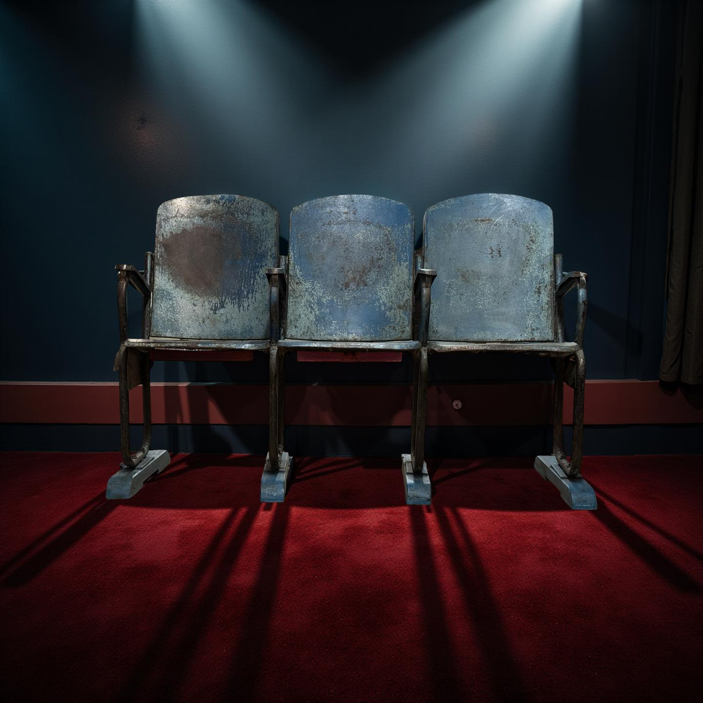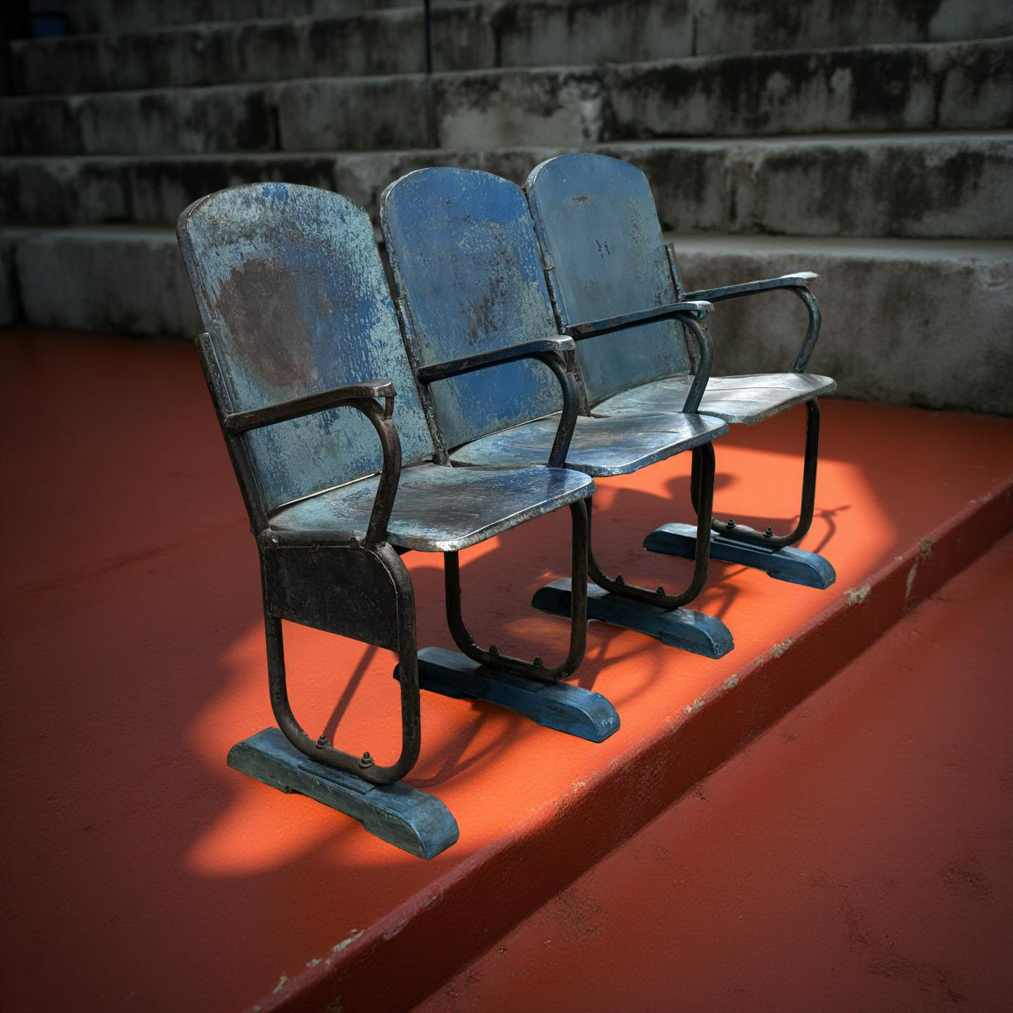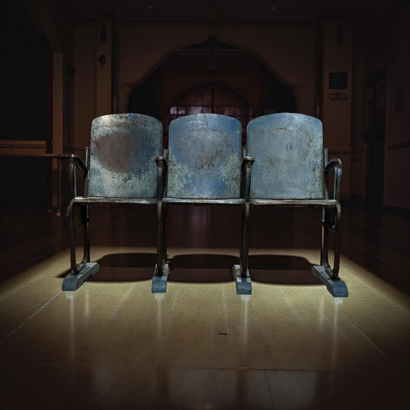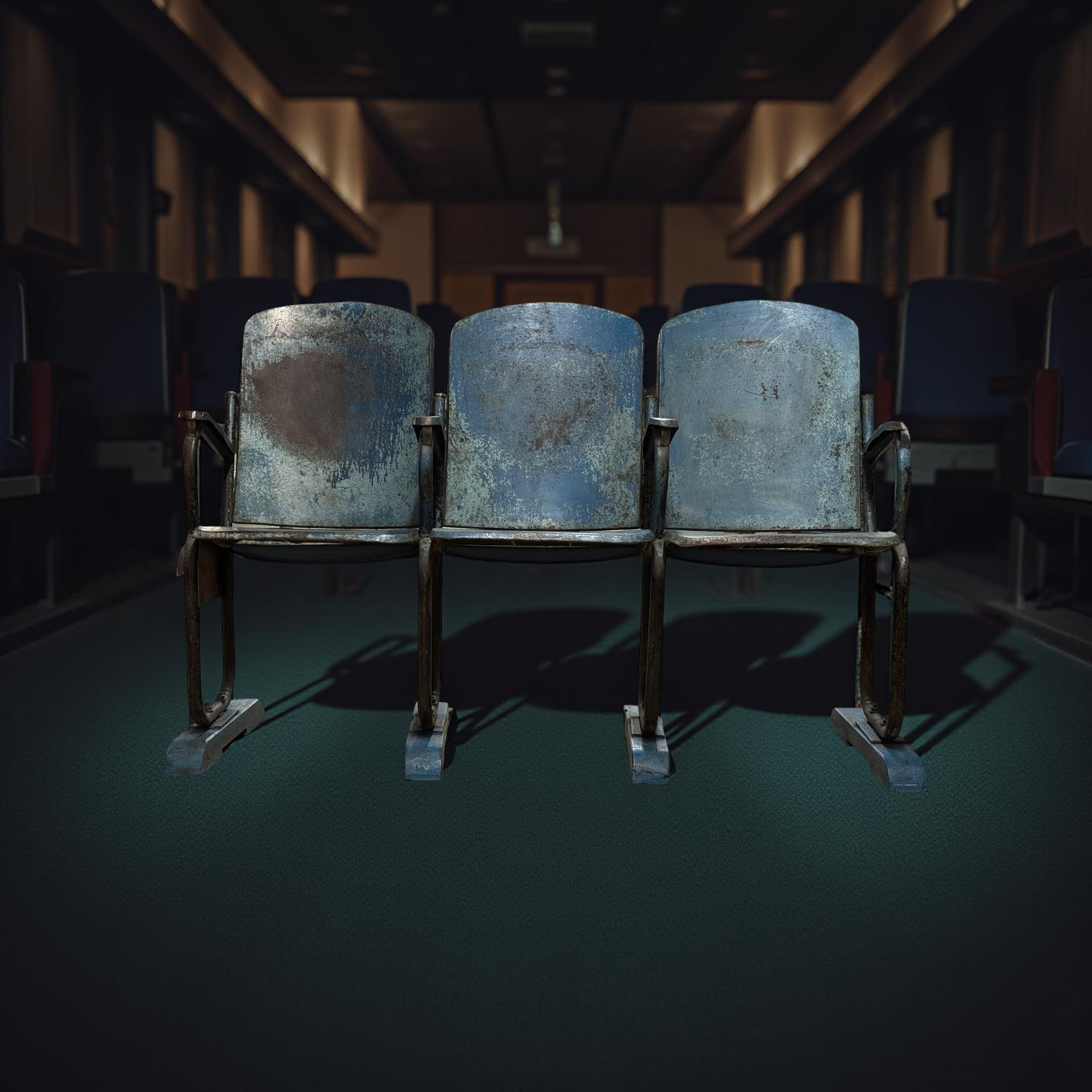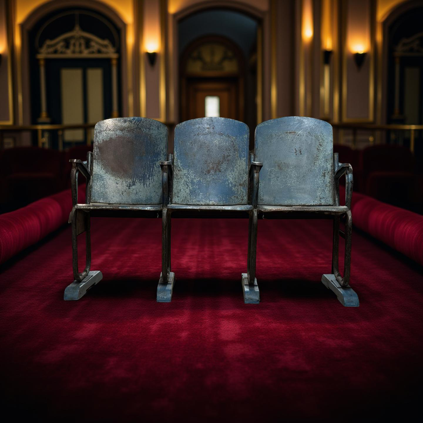 Bioscoopstoel ijzer blauw/grijs (3zits)