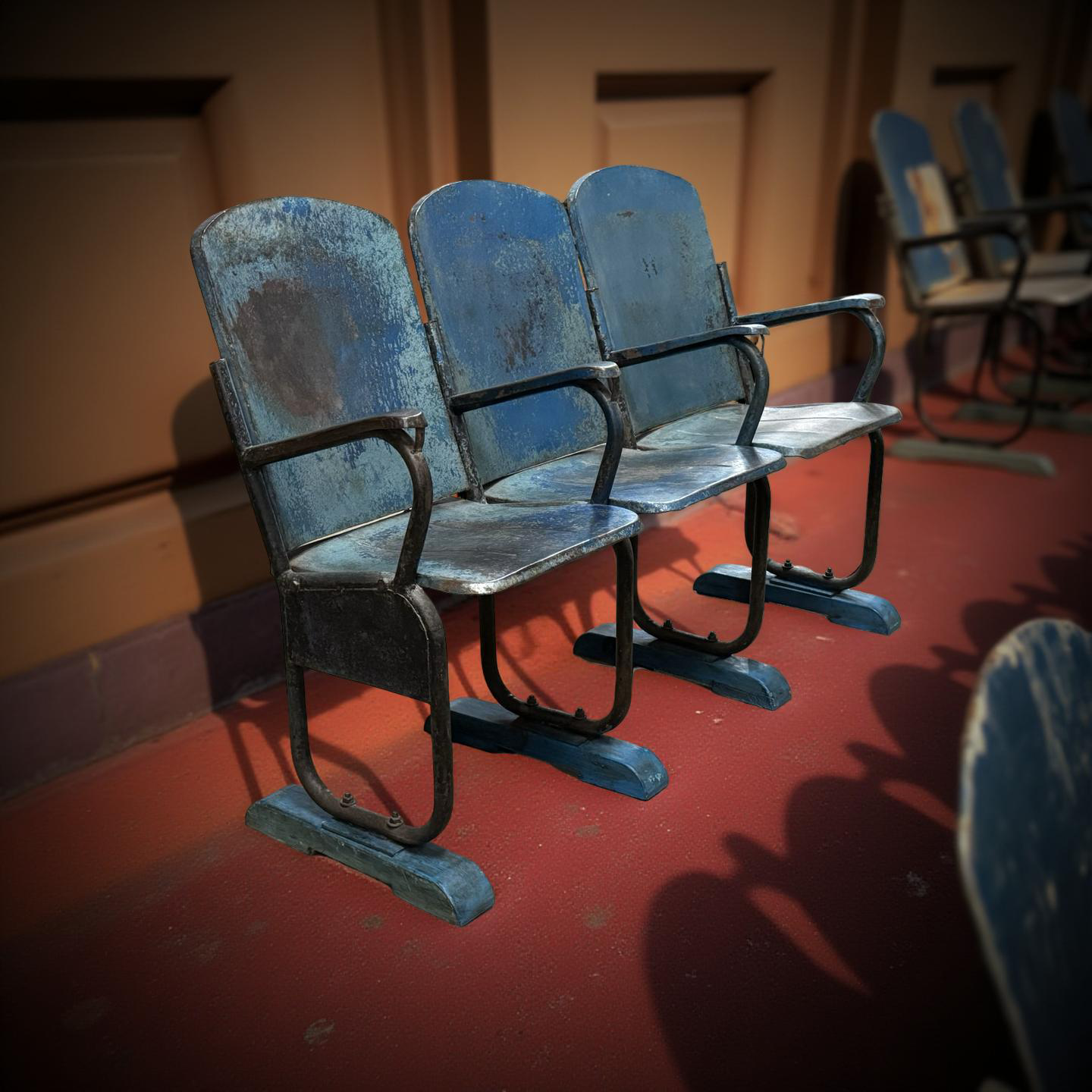 IJzeren bioscoopstoel uniek leuk voor kinderkamer of kantine en ook voor in huis