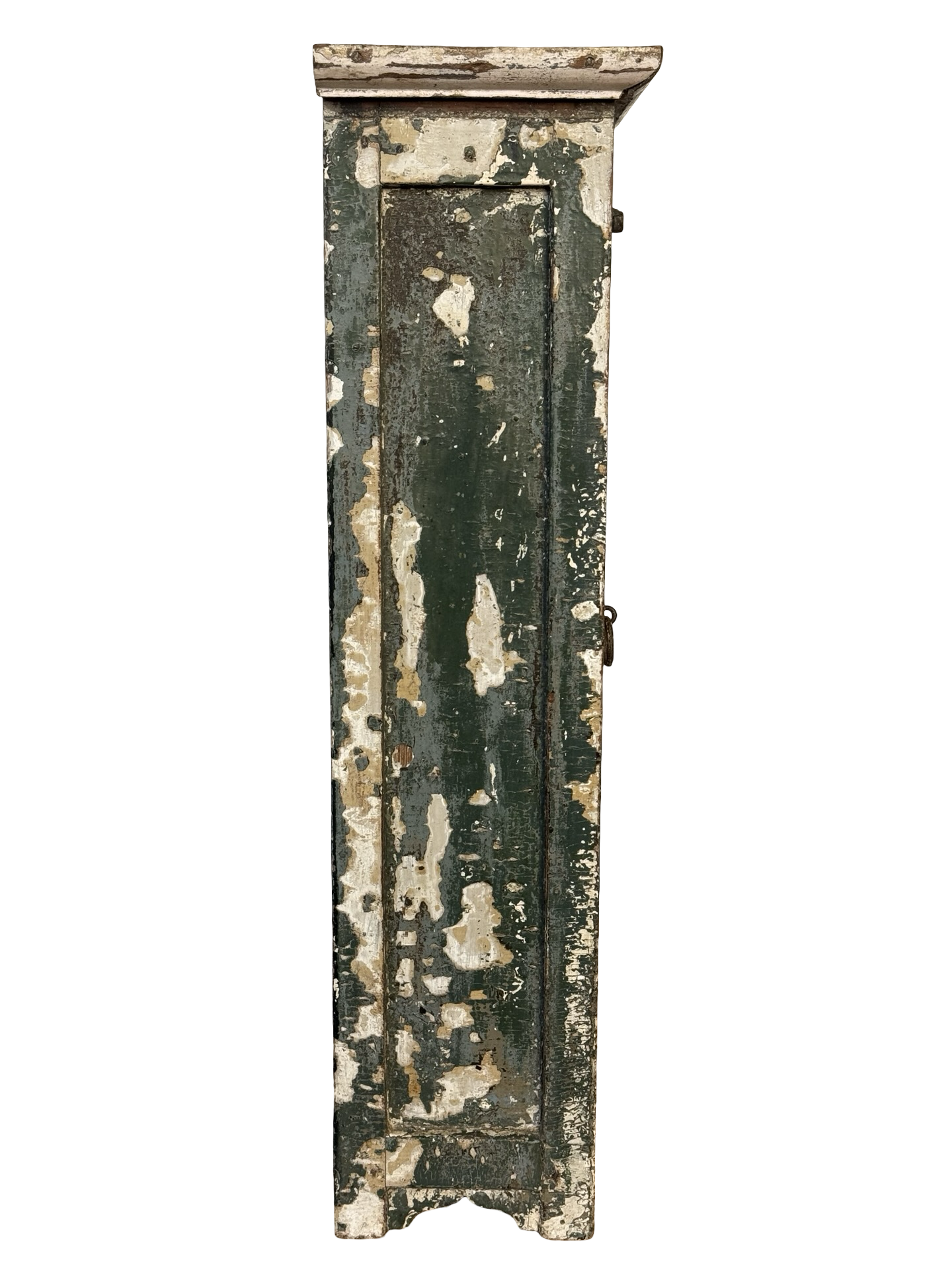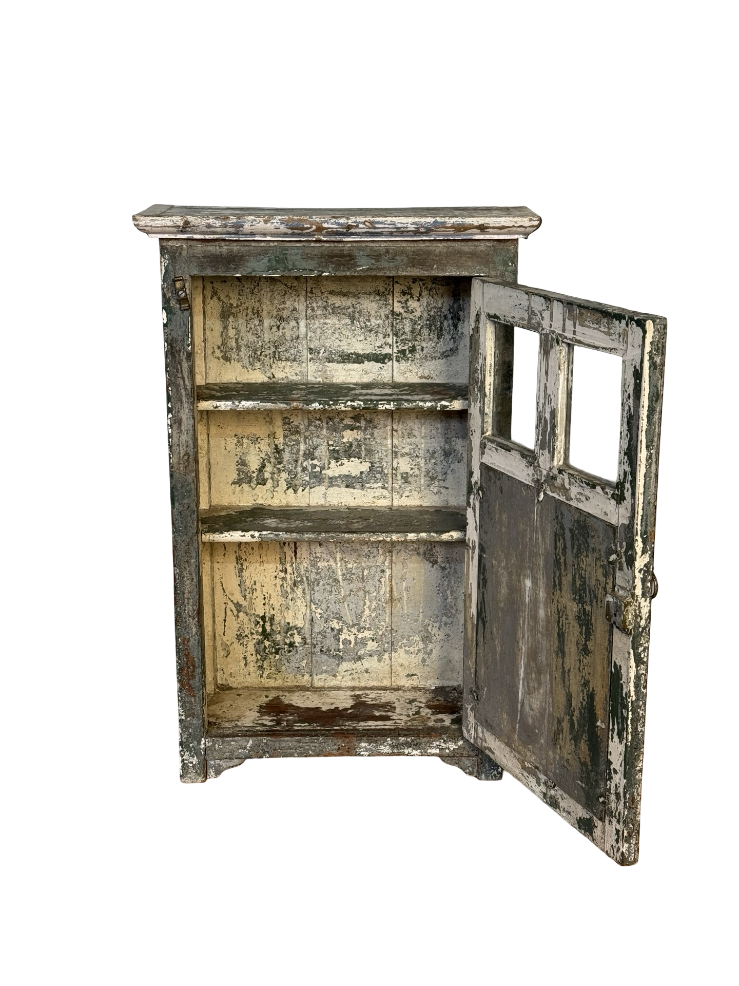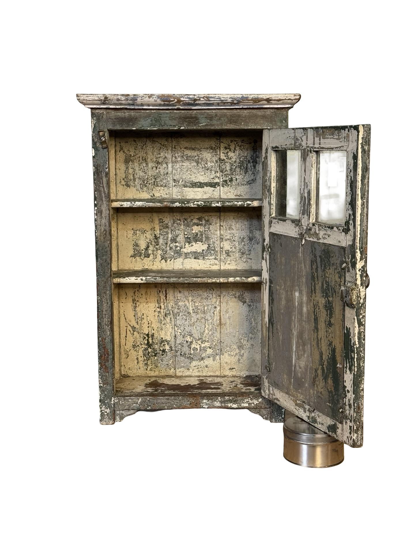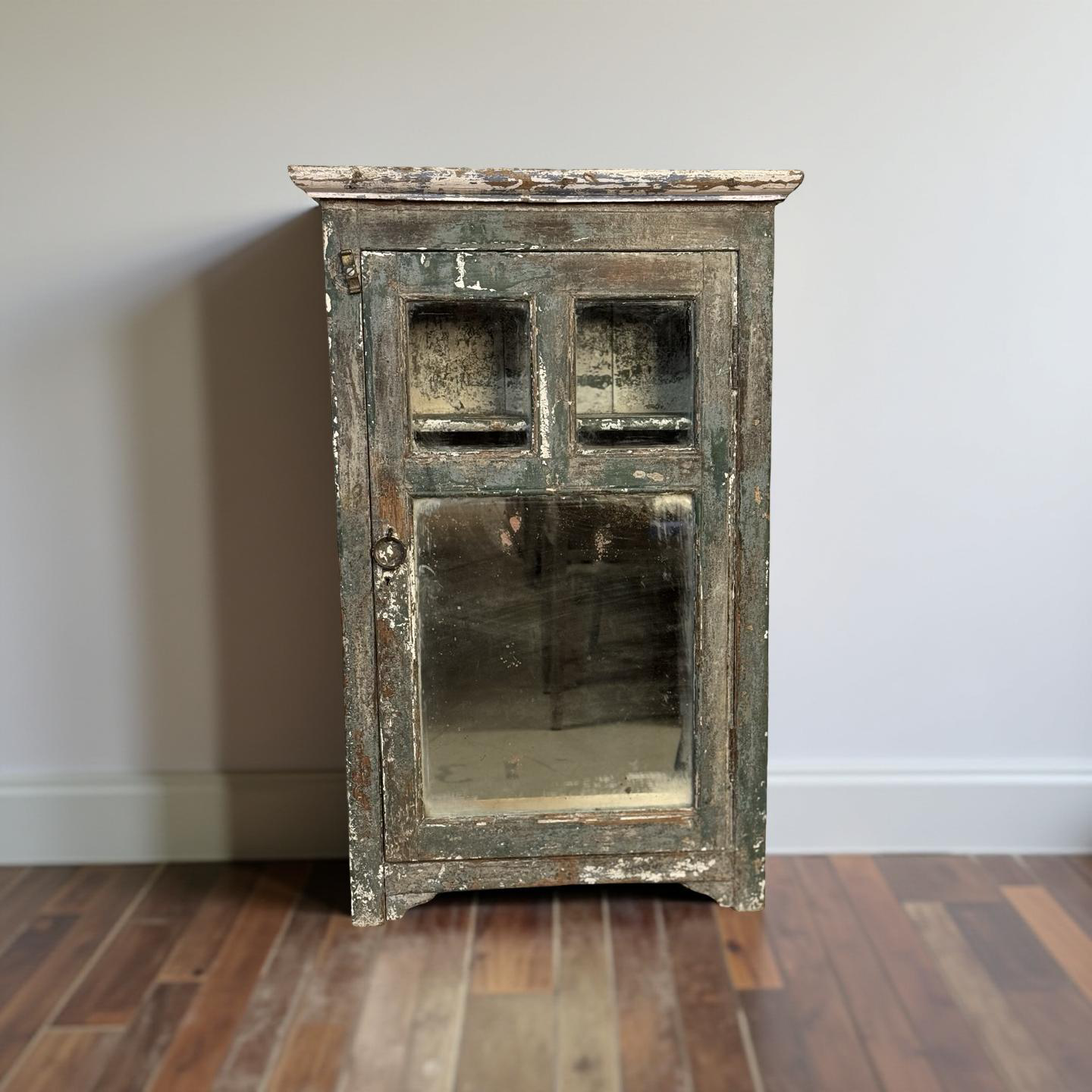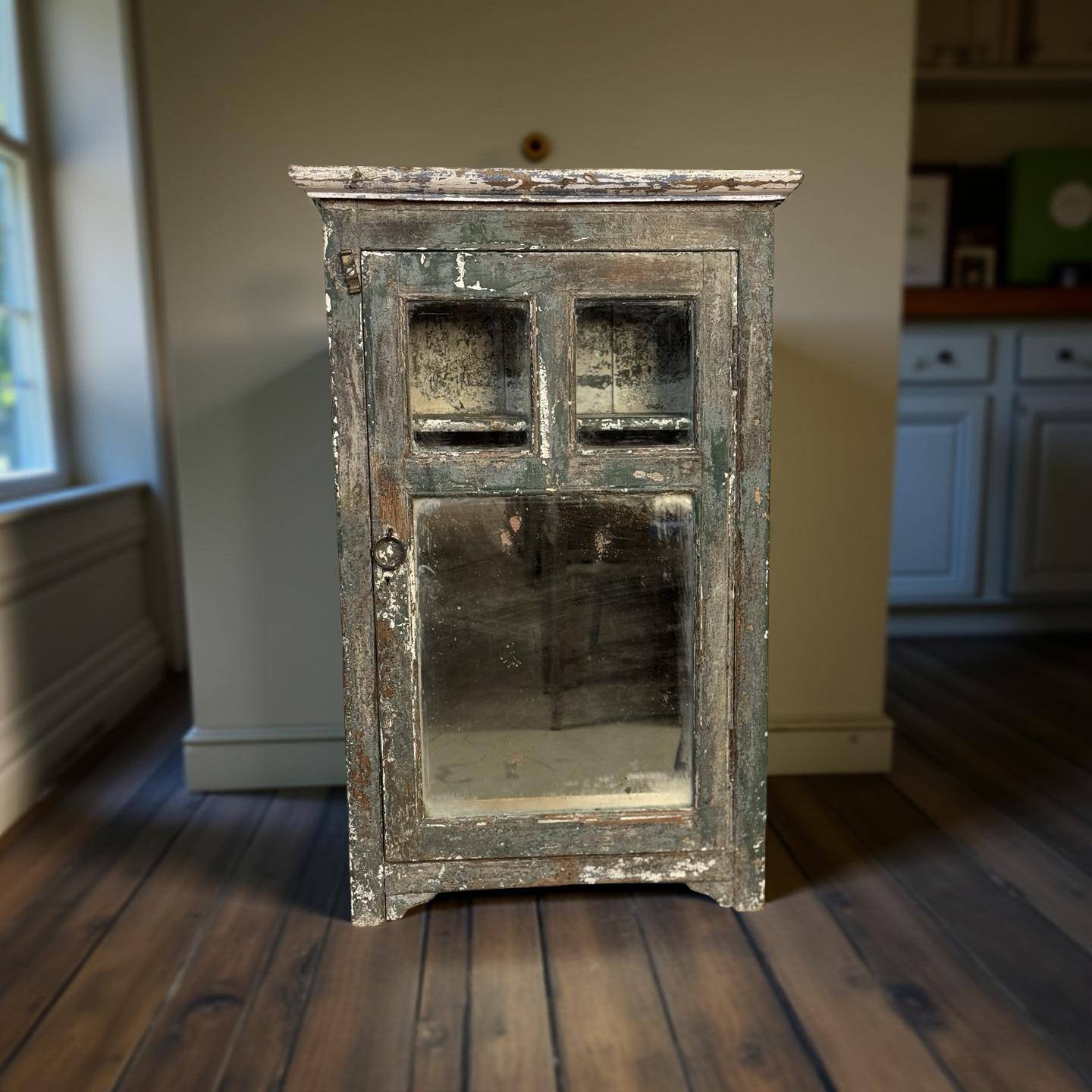 Dit handgemaakte hangkastje met spiegel combineert een prachtige blauw-grijs kleurstelling met uniek vakmanschap. Een sfeervol en stijlvol accent voor aan de muur.