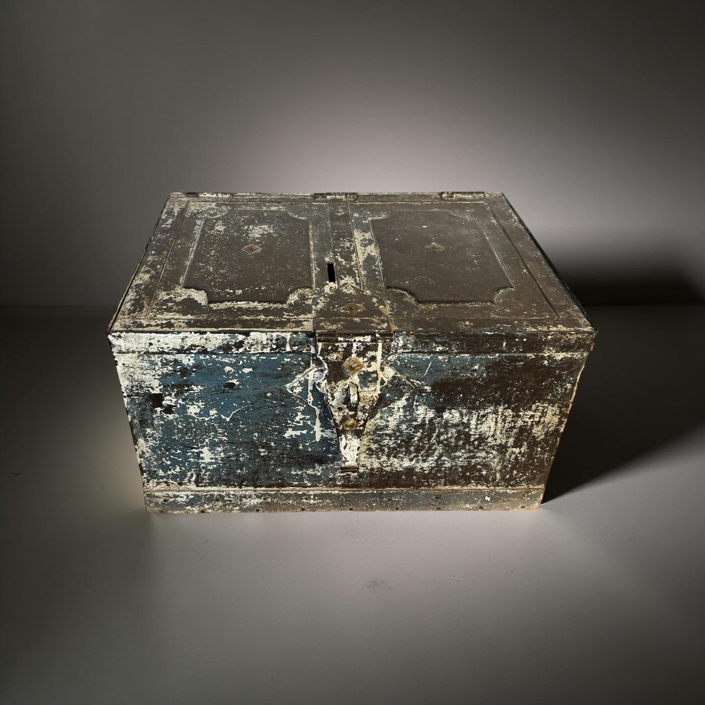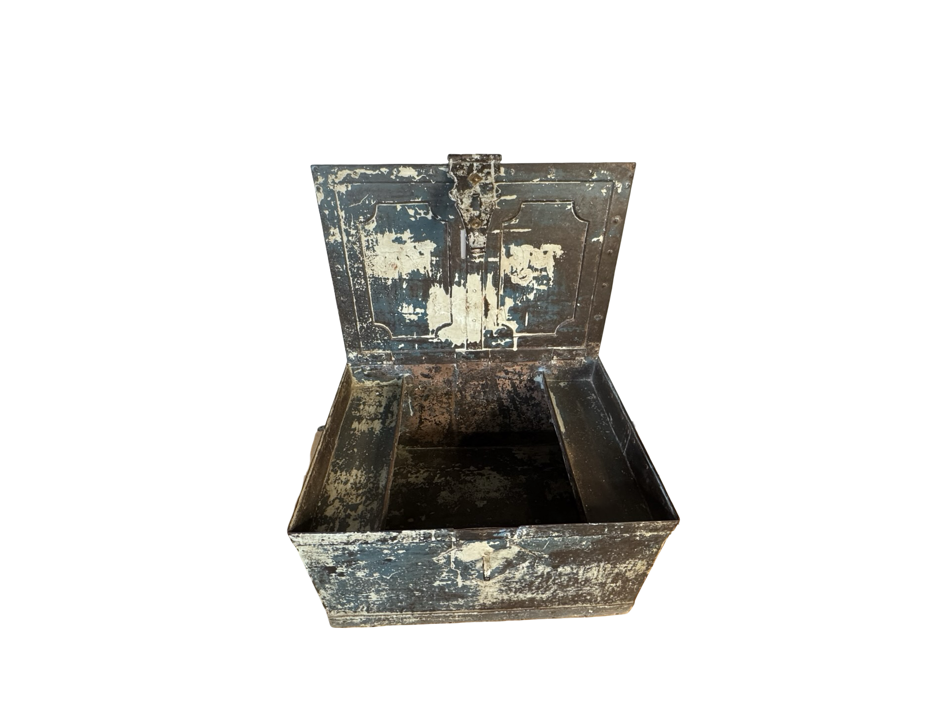 Deze robuuste iron money box is met de hand gemaakt in India en heeft een authentieke, vintage uitstraling. Elk stuk is uniek en vol karakter – ideaal als decoratief item of bijzondere opberger.