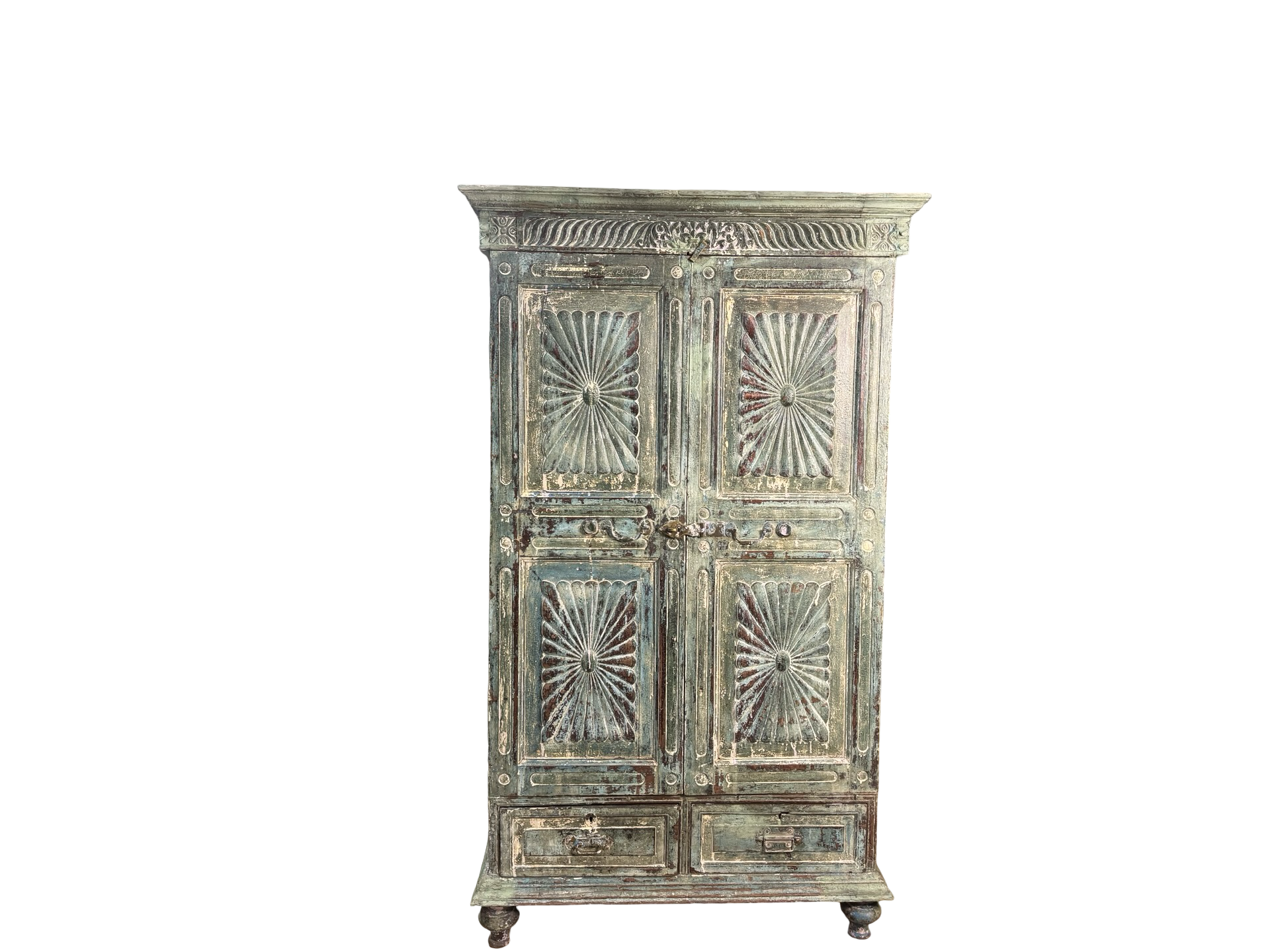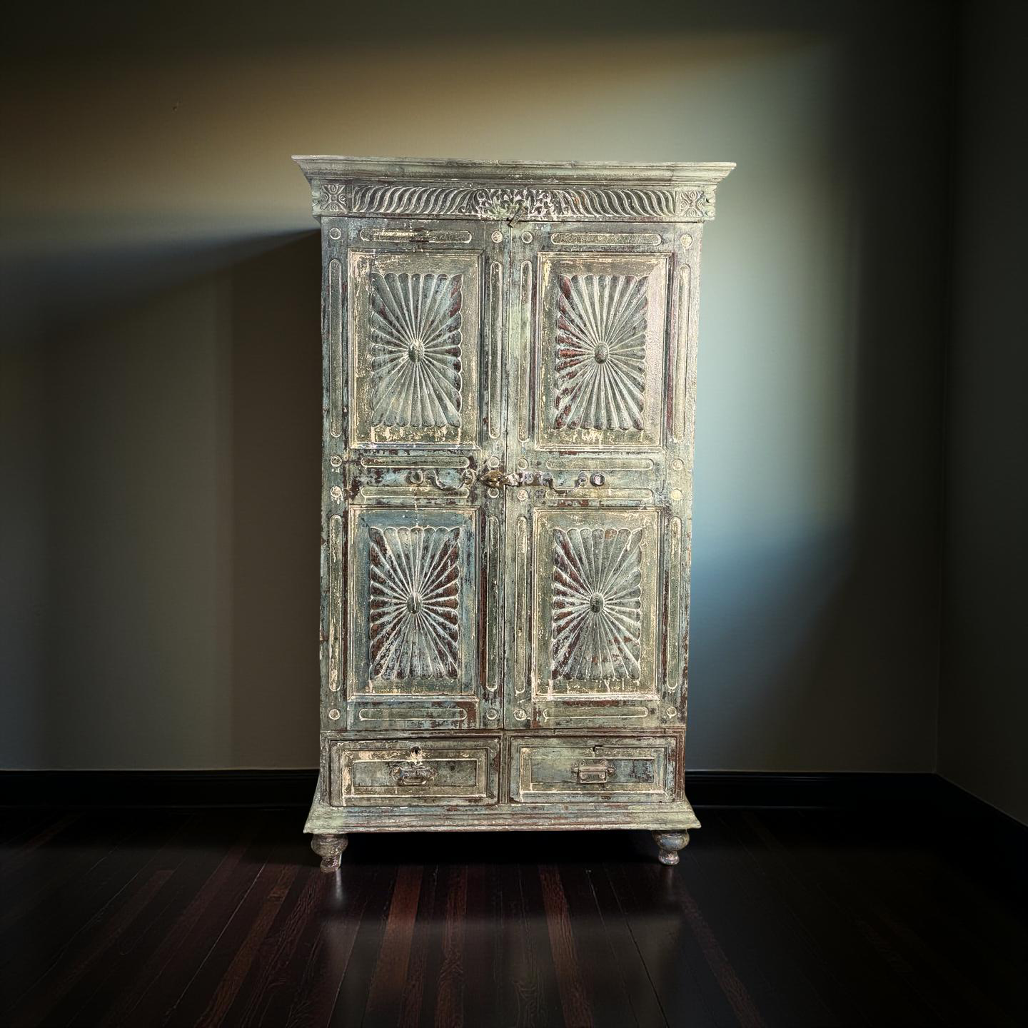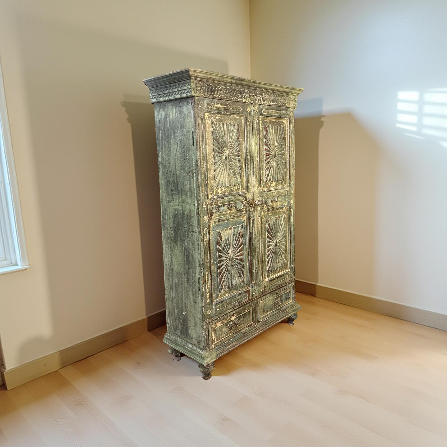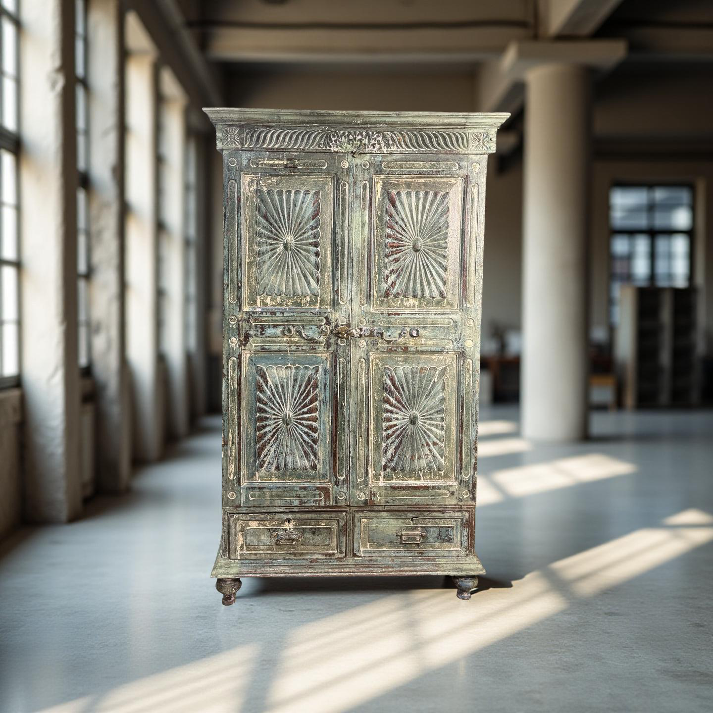 Breng een vleugje elegantie en vakmanschap in je huis met onze handgemaakte kast. Deze unieke kast, met twee deuren en twee laden, is zorgvuldig vervaardigd door getalenteerde ambachtslieden. Het diepe blauwe design geeft je interieur een stijlvolle en frisse uitstraling. Perfect voor het opbergen van je favoriete spullen terwijl je woonruimte straalt van karakter en kwaliteit.