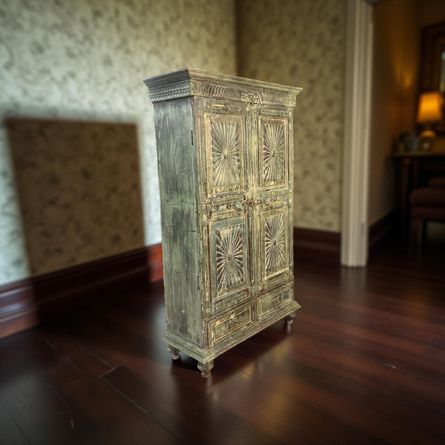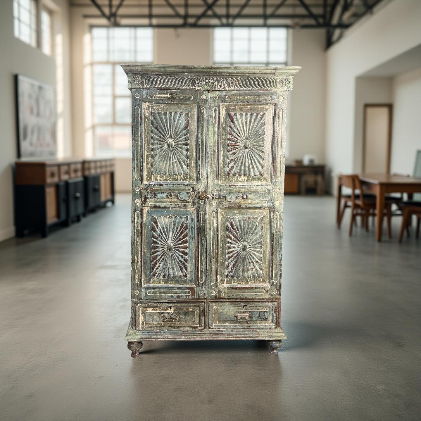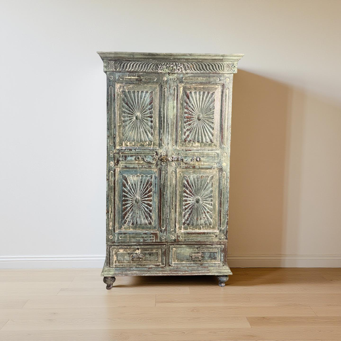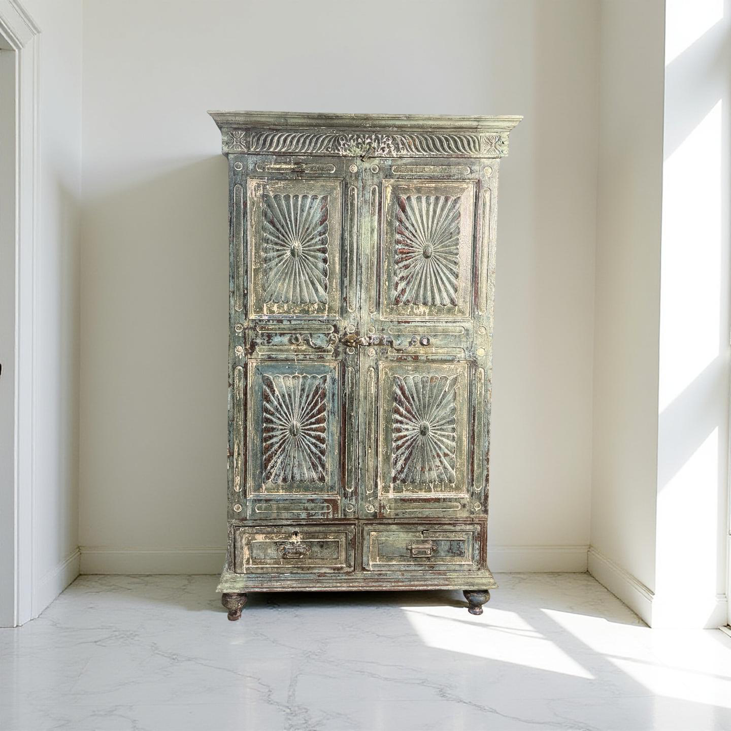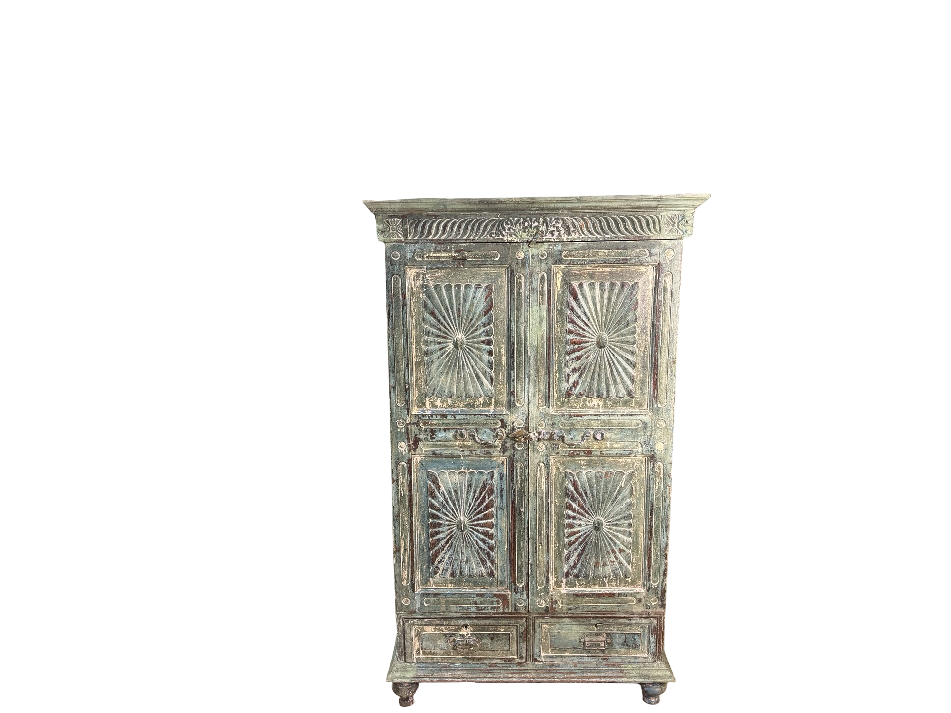 Breng een vleugje elegantie en vakmanschap in je huis met onze handgemaakte kast. Deze unieke kast, met twee deuren en twee laden, is zorgvuldig vervaardigd door getalenteerde ambachtslieden. Het diepe blauwe design geeft je interieur een stijlvolle en frisse uitstraling. Perfect voor het opbergen van je favoriete spullen terwijl je woonruimte straalt van karakter en kwaliteit.