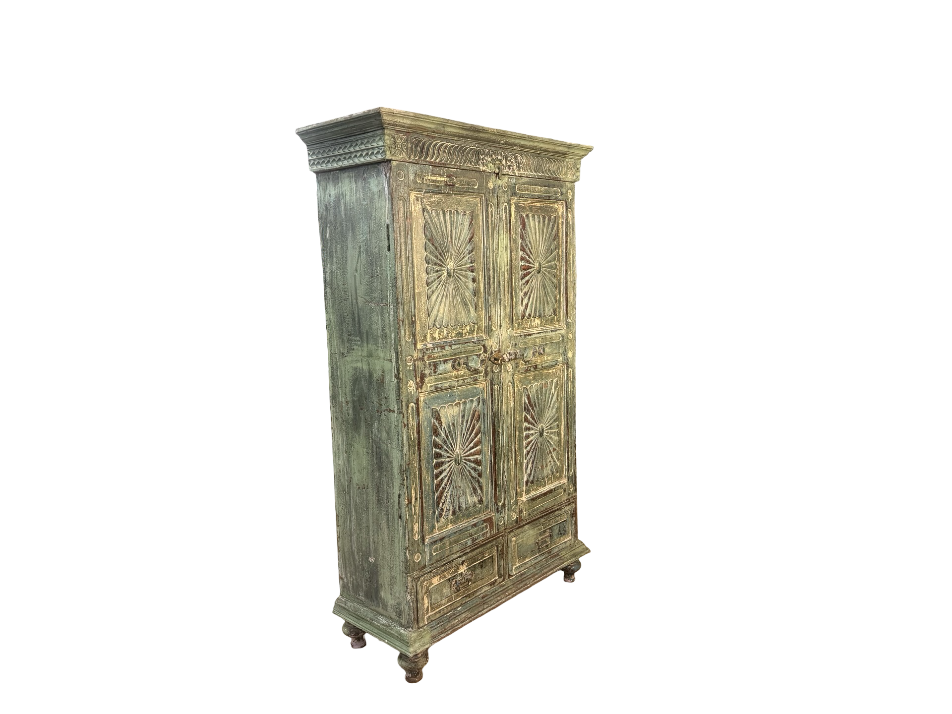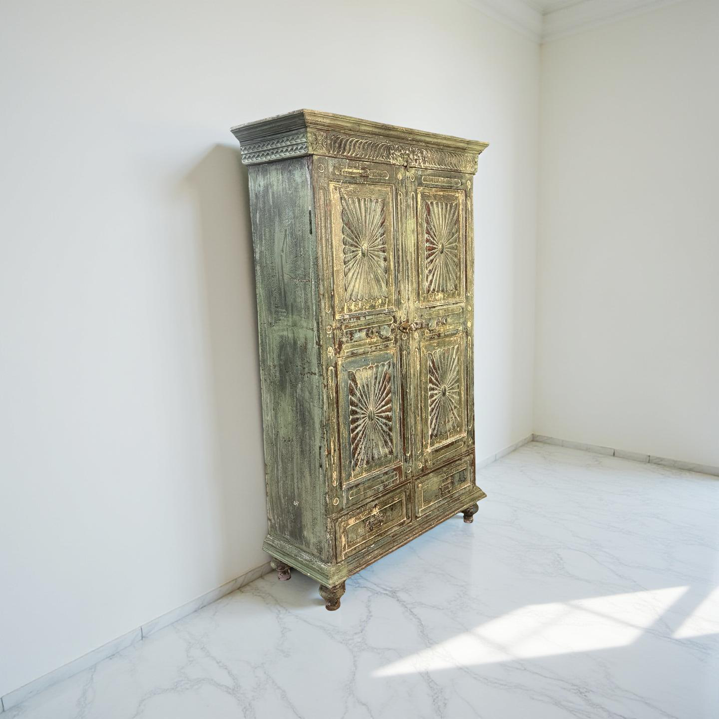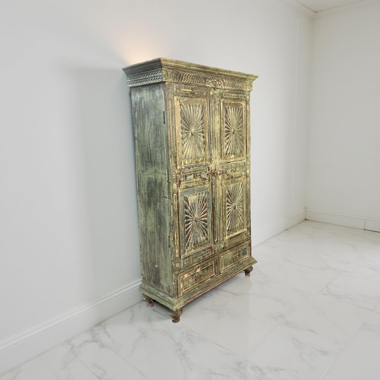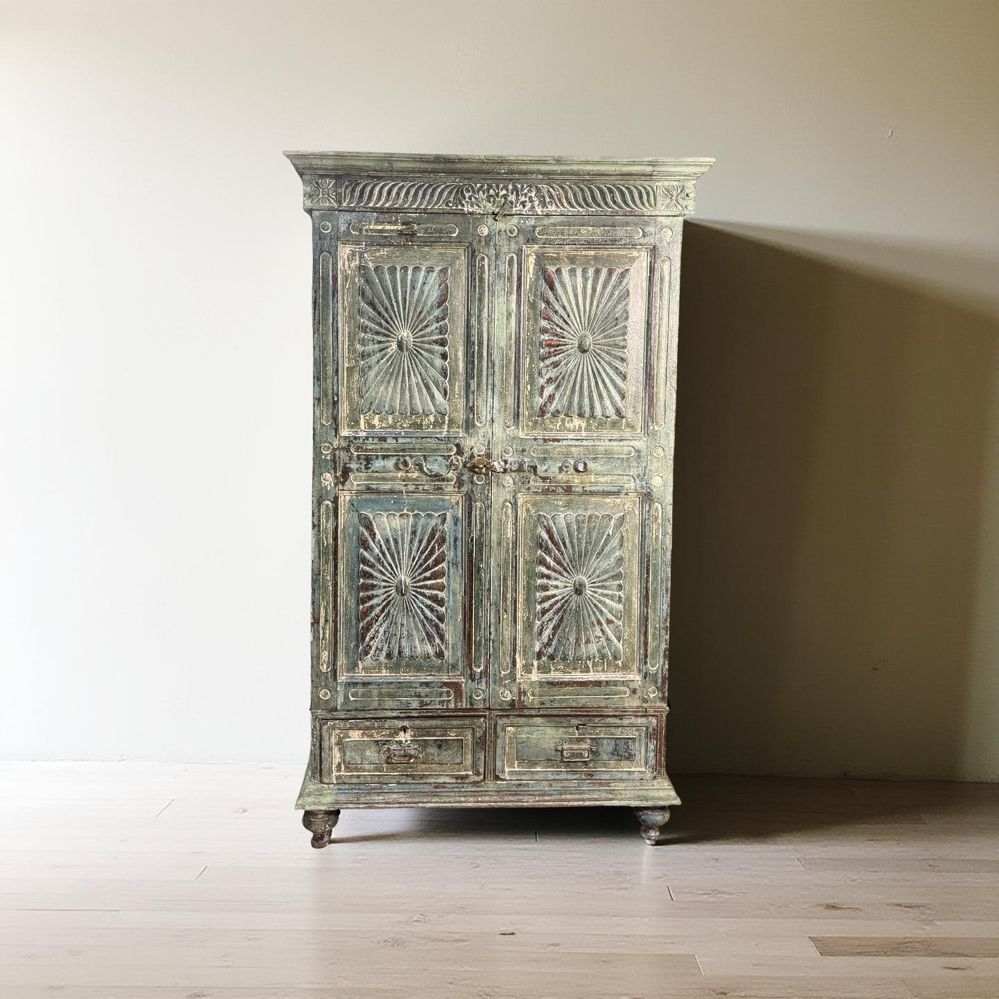 Breng een vleugje elegantie en vakmanschap in je huis met onze handgemaakte kast. Deze unieke kast, met twee deuren en twee laden, is zorgvuldig vervaardigd door getalenteerde ambachtslieden. Het diepe blauwe design geeft je interieur een stijlvolle en frisse uitstraling. Perfect voor het opbergen van je favoriete spullen terwijl je woonruimte straalt van karakter en kwaliteit.