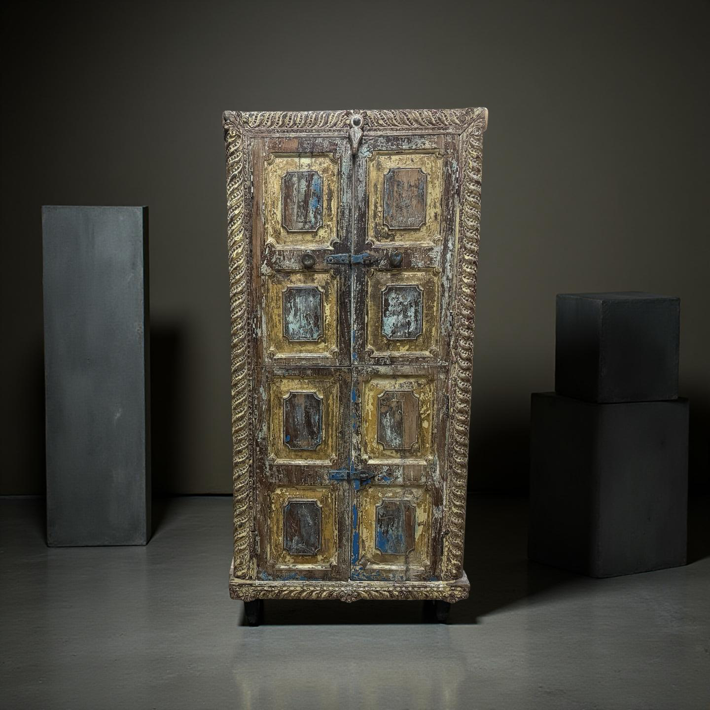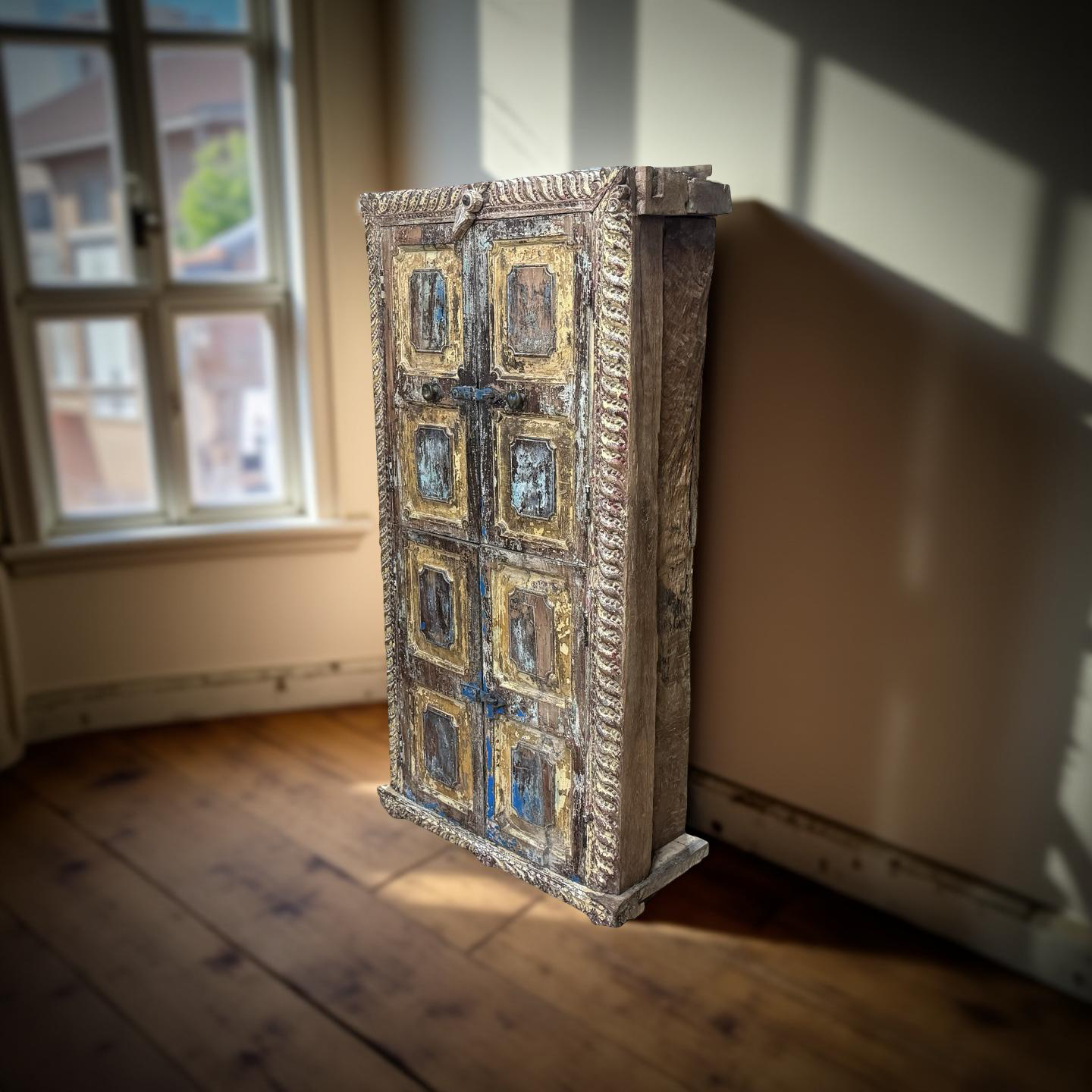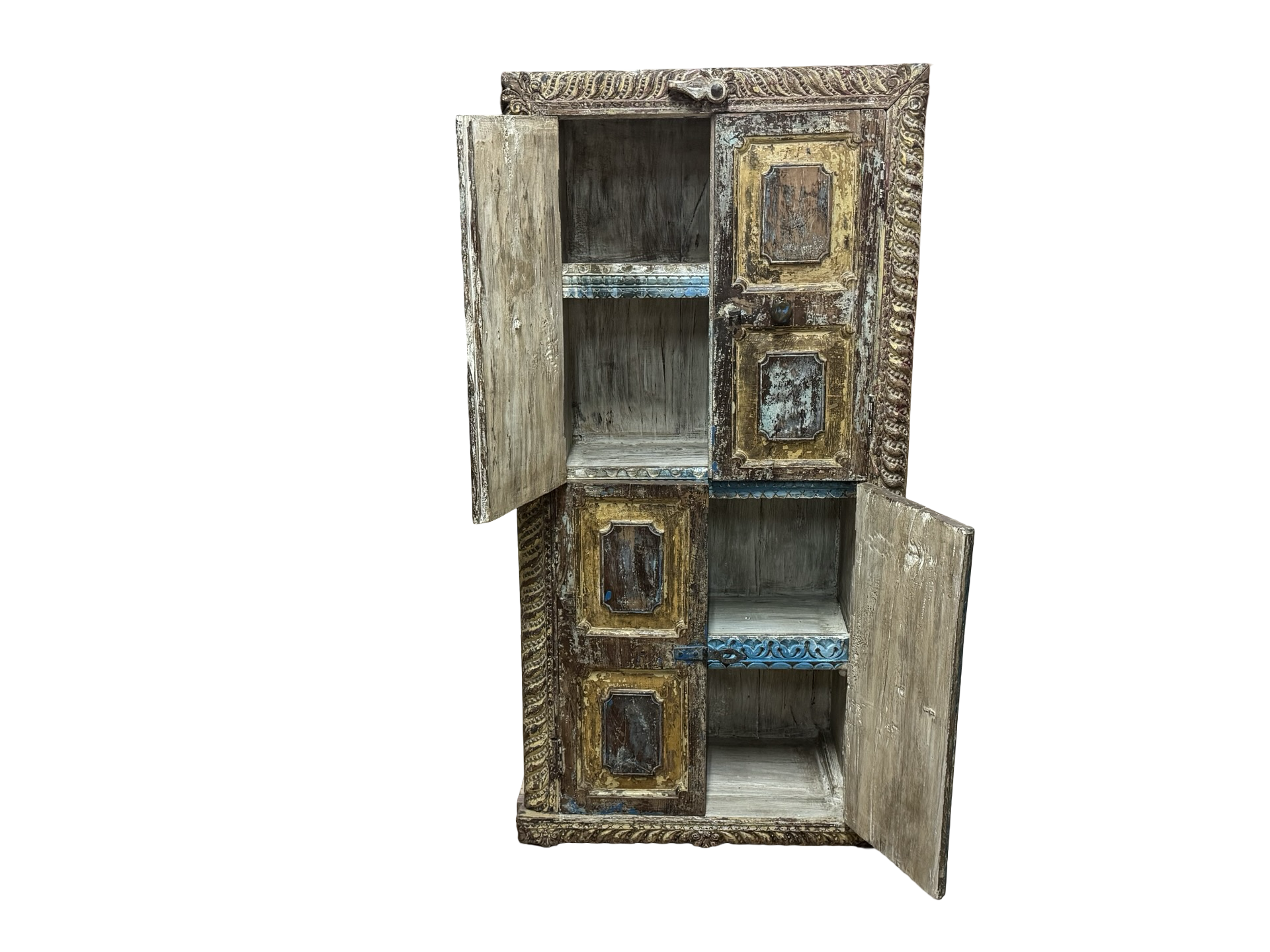 Breng een stukje authentieke schoonheid in je huis met onze handgemaakte 4-deurs kast, rechtstreeks uit India. Elke kast is uniek, met liefde en vakmanschap vervaardigd, en straalt een primitieve charme uit die niet te vinden is in massaproductie. Perfect om je woonkamer, slaapkamer of eetkamer een warme en karaktervolle uitstraling te geven.