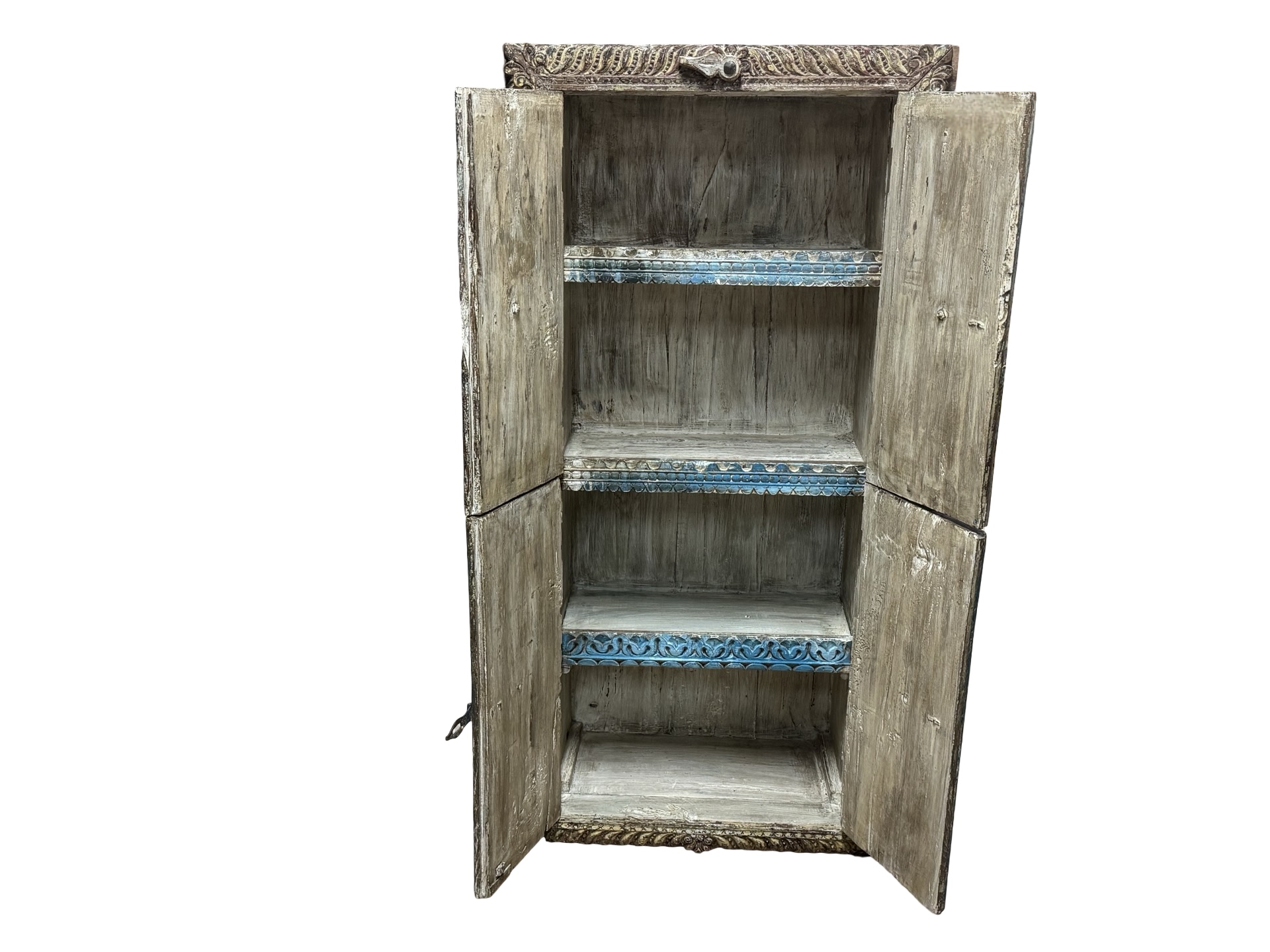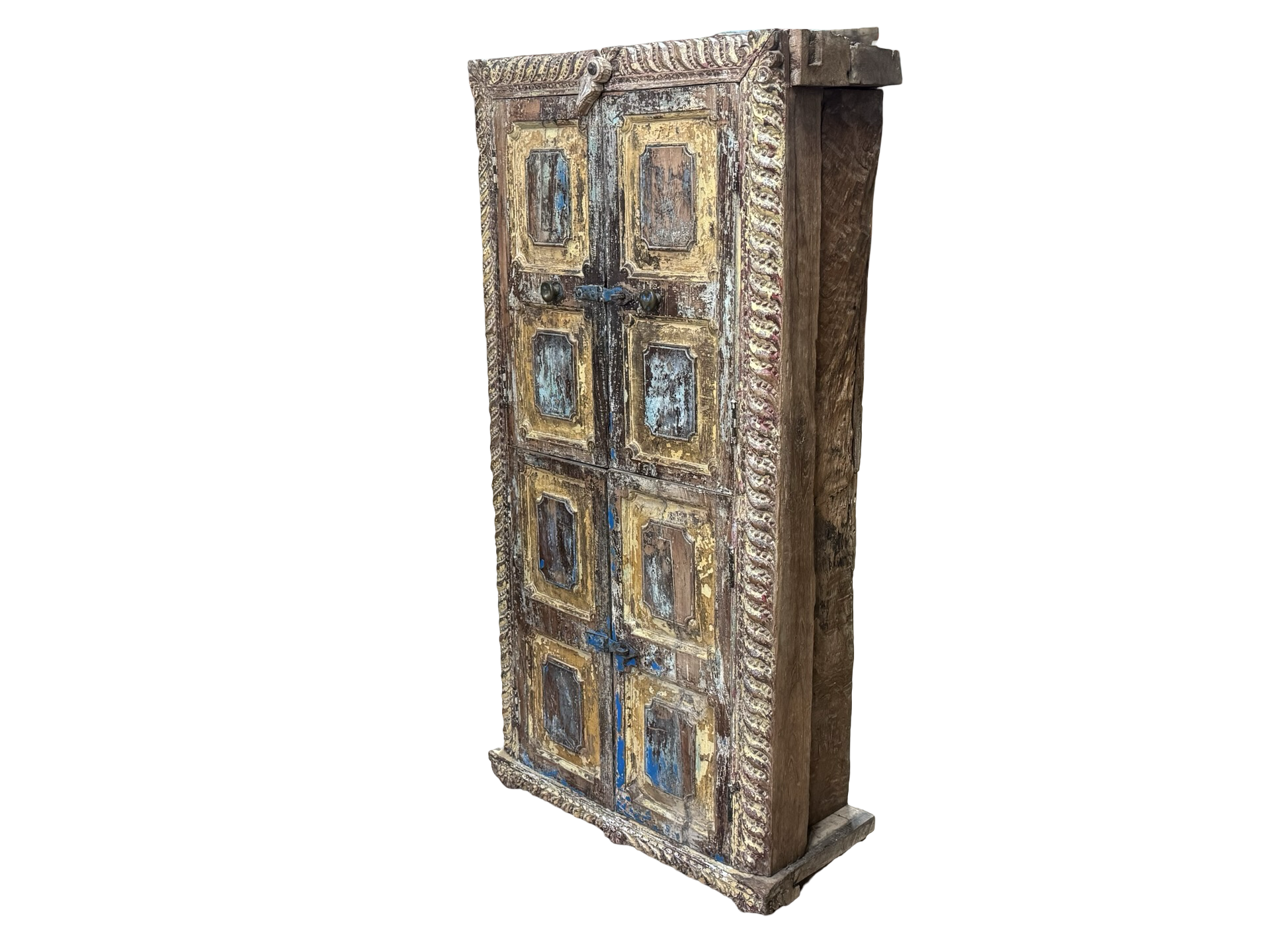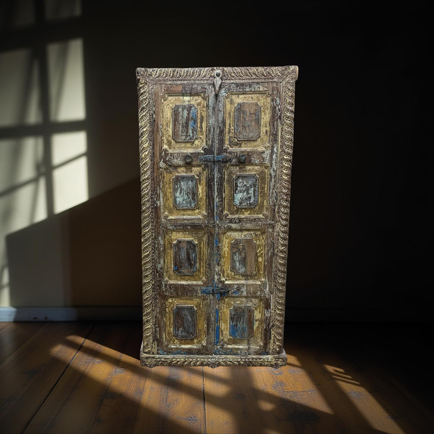 Breng een stukje authentieke schoonheid in je huis met onze handgemaakte 4-deurs kast, rechtstreeks uit India. Elke kast is uniek, met liefde en vakmanschap vervaardigd, en straalt een primitieve charme uit die niet te vinden is in massaproductie. Perfect om je woonkamer, slaapkamer of eetkamer een warme en karaktervolle uitstraling te geven.