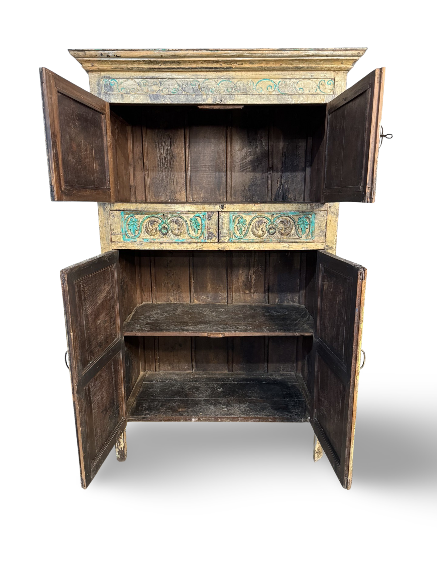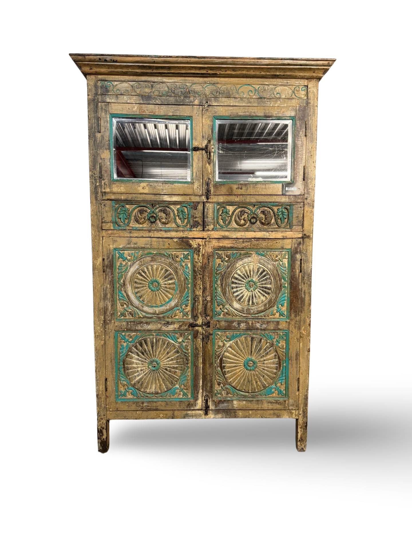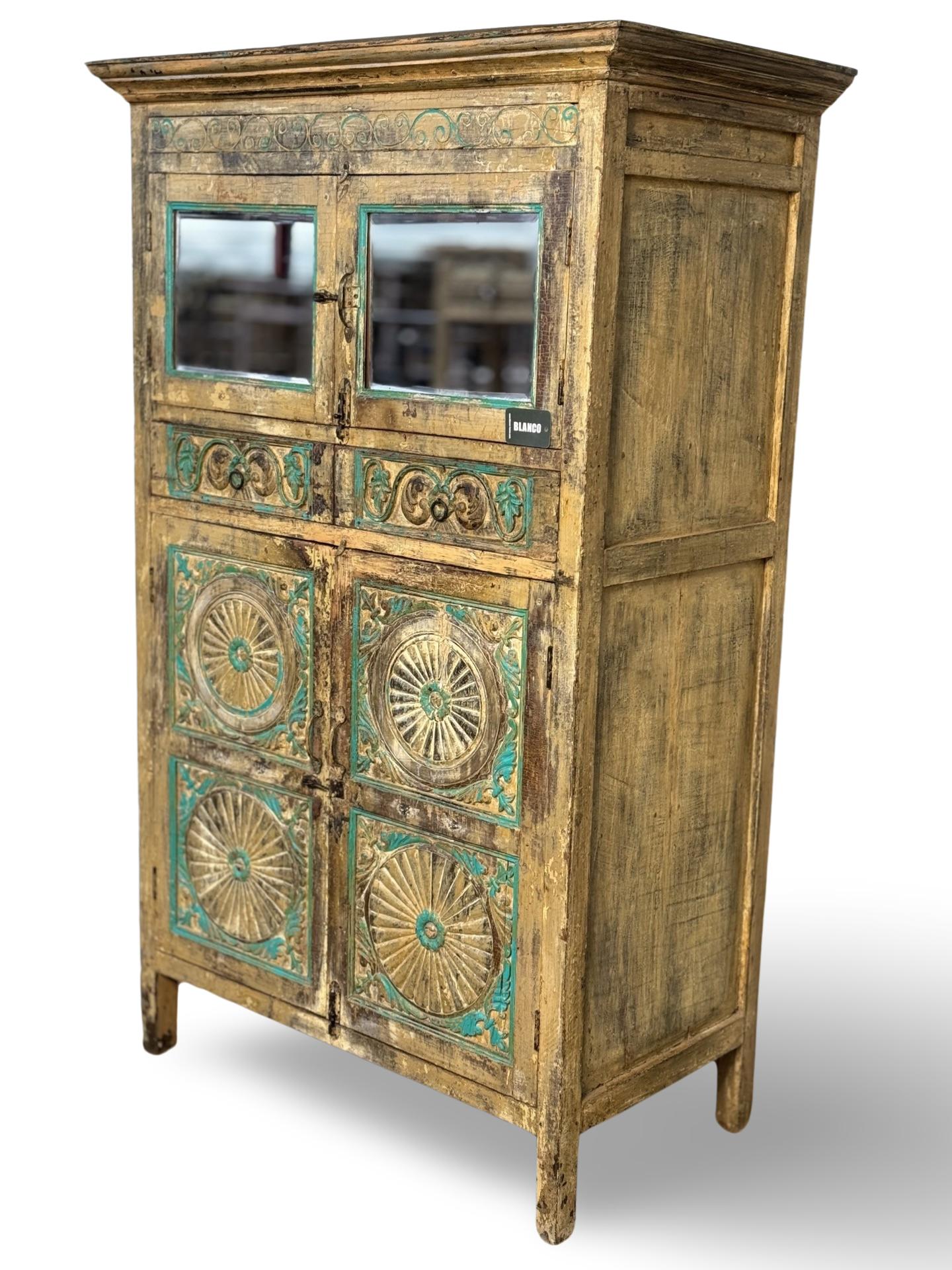 Kast 4dr 2la geel/acqua snijw 116x64x185
