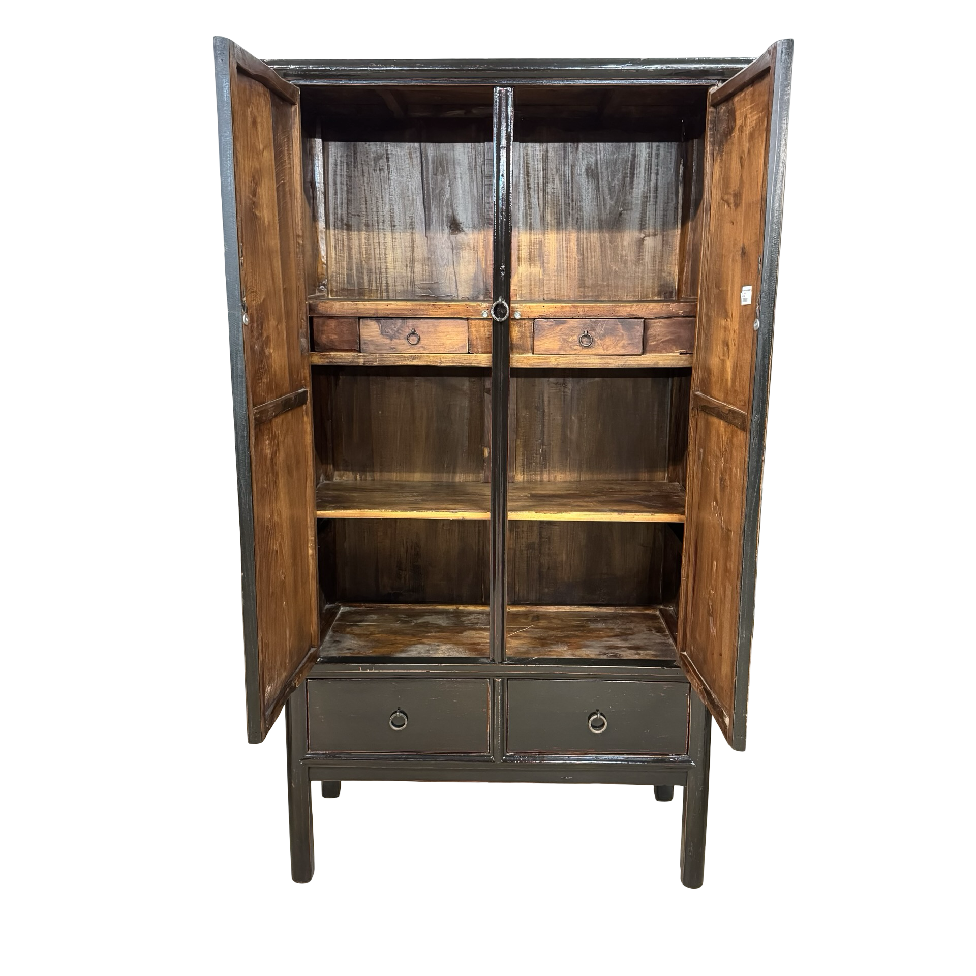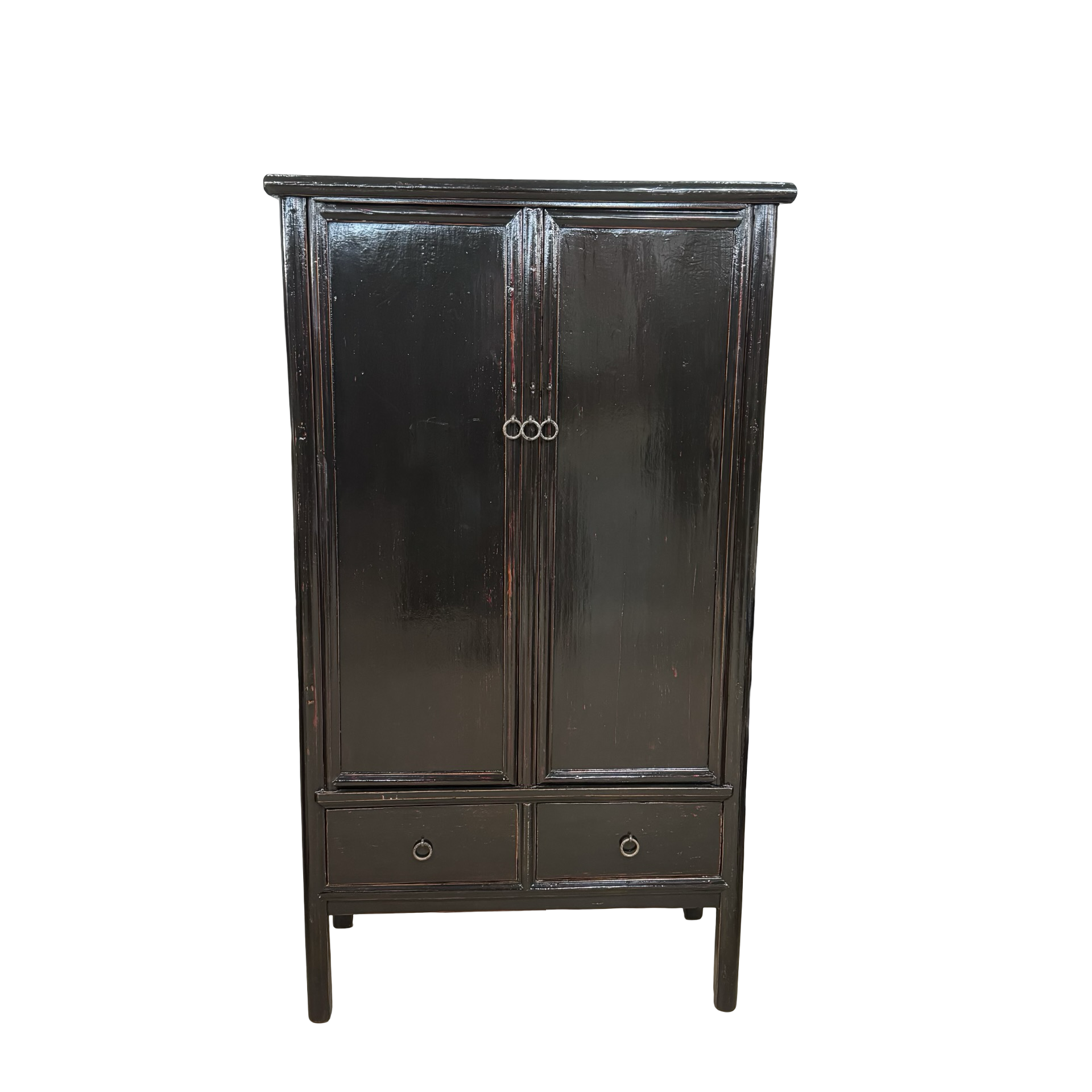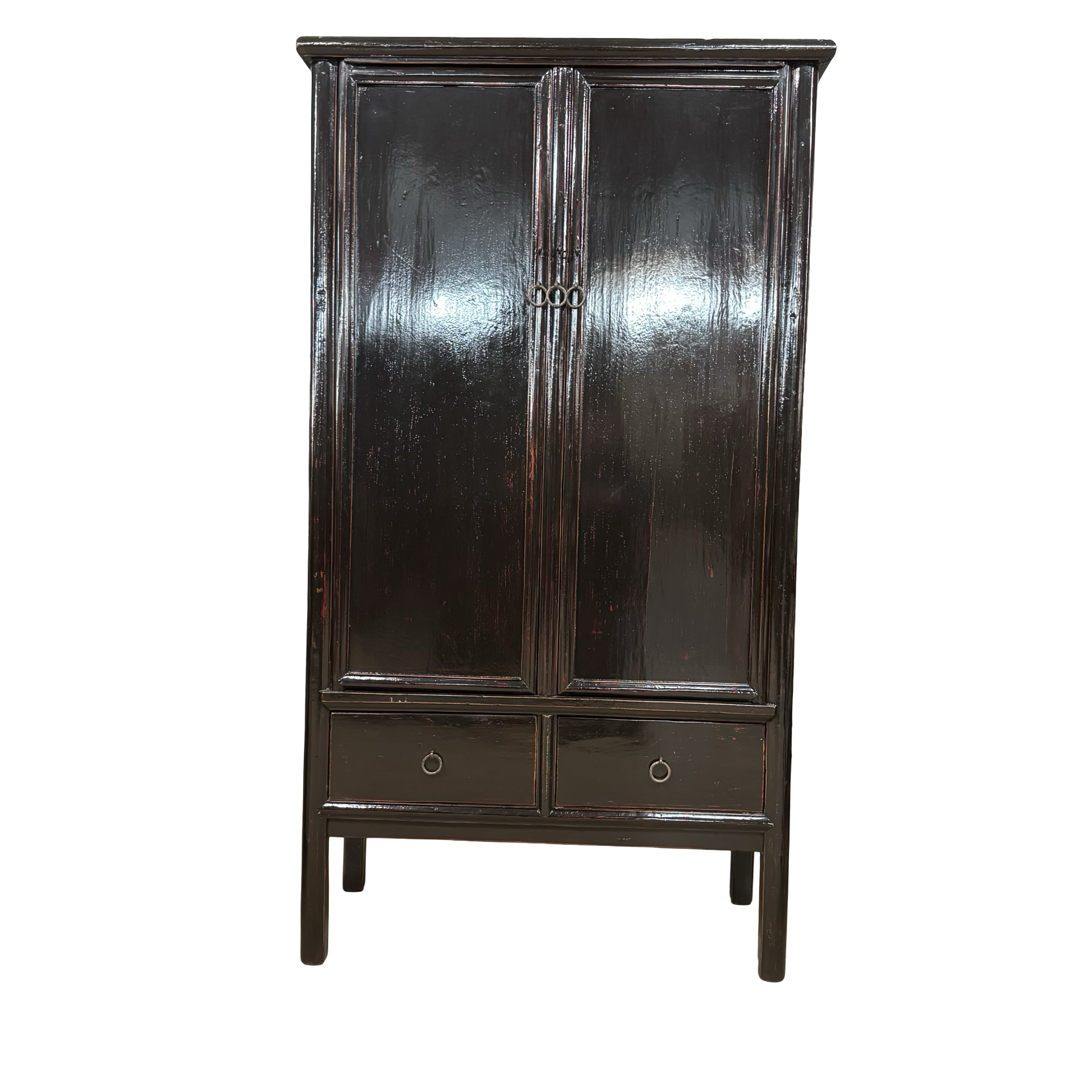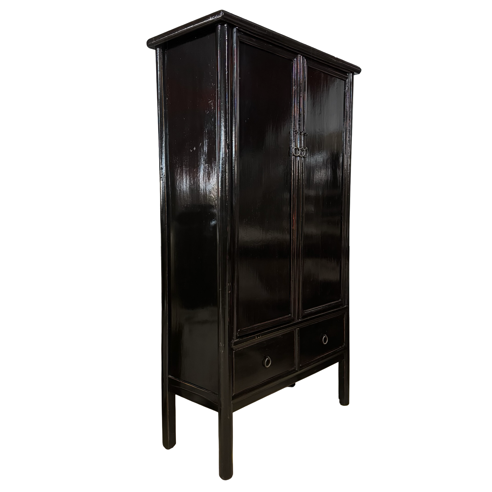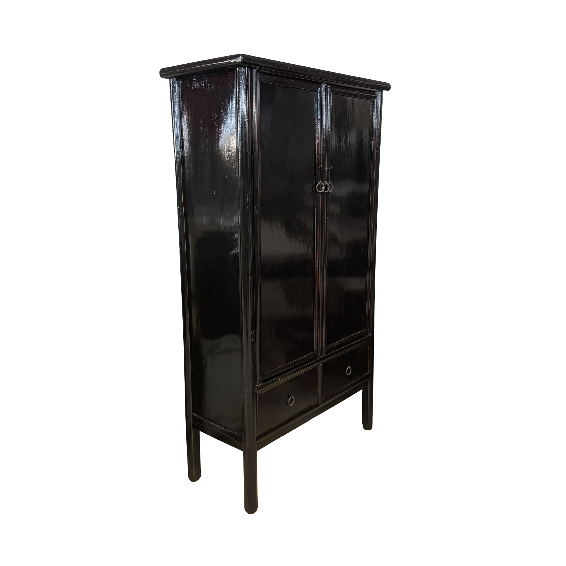 Deze unieke, handgemaakte kast uit China is uitgevoerd in hout met een subtiele laklaag in diep zwart. Het ambachtelijke lakwerk geeft het meubel een rustige glans en een verfijnde, tijdloze uitstraling.