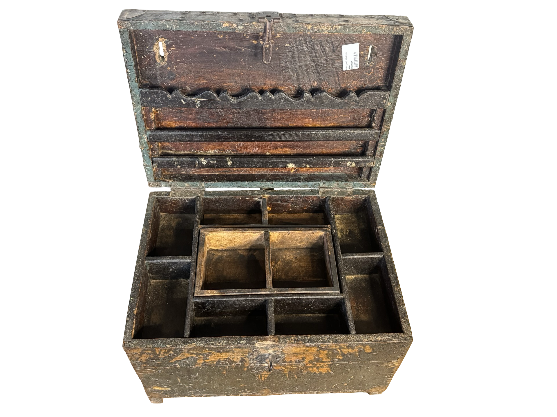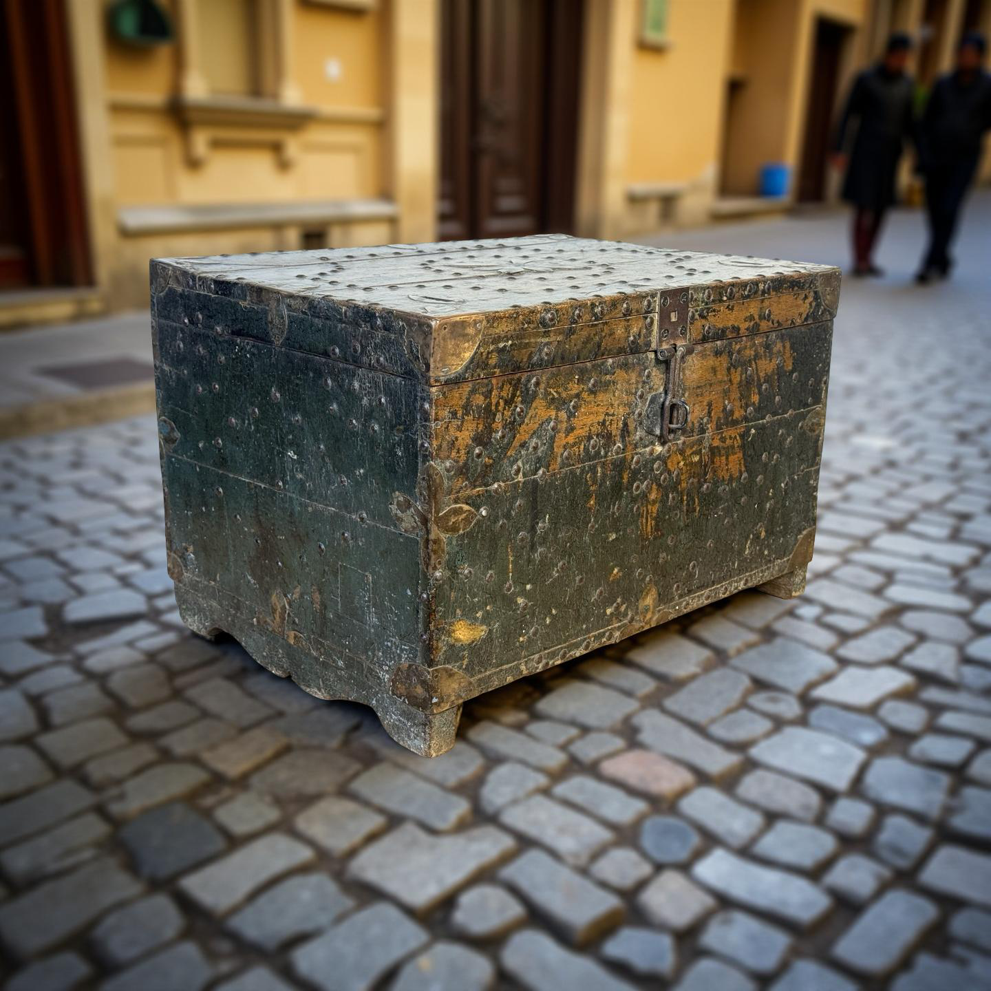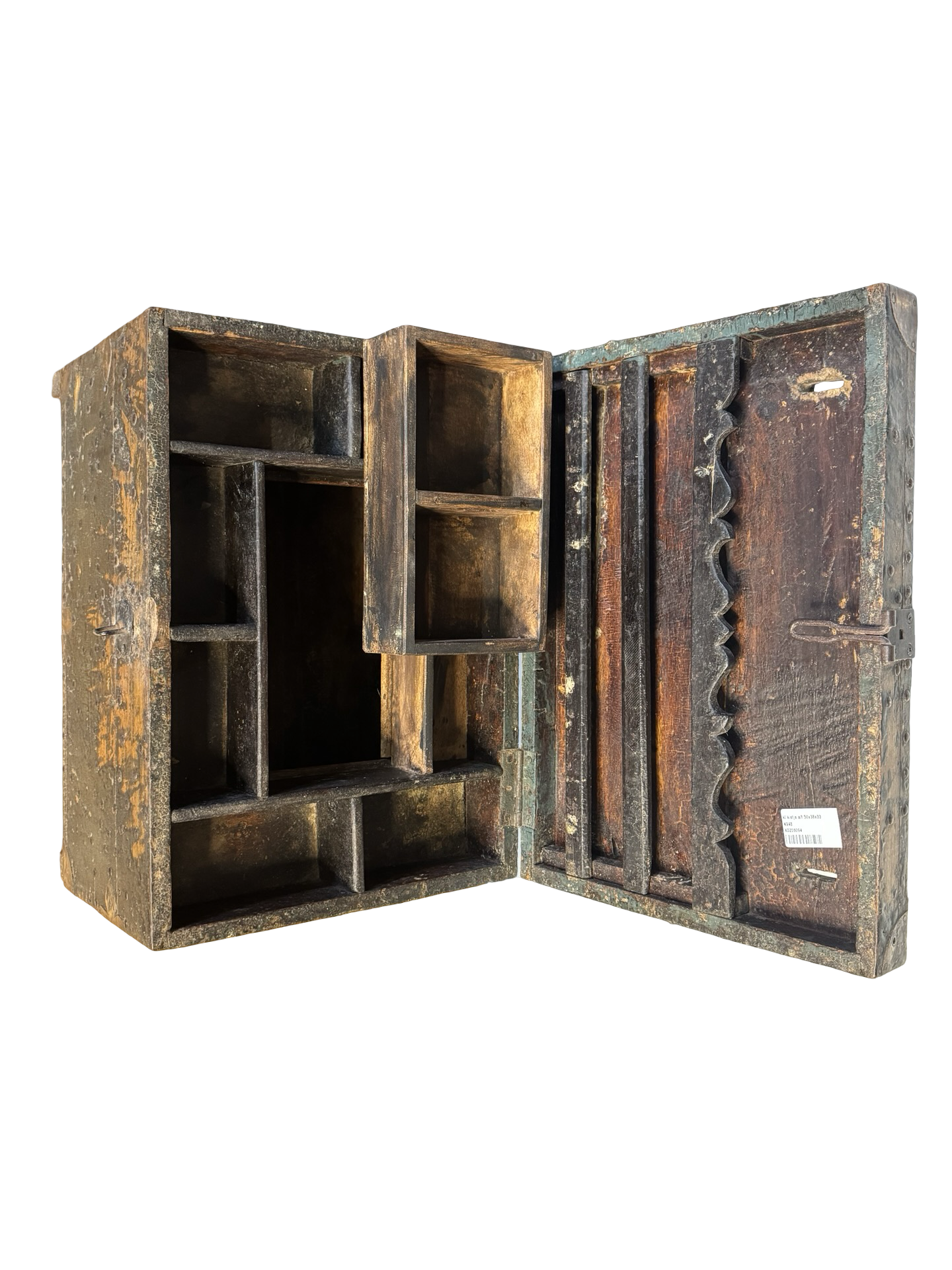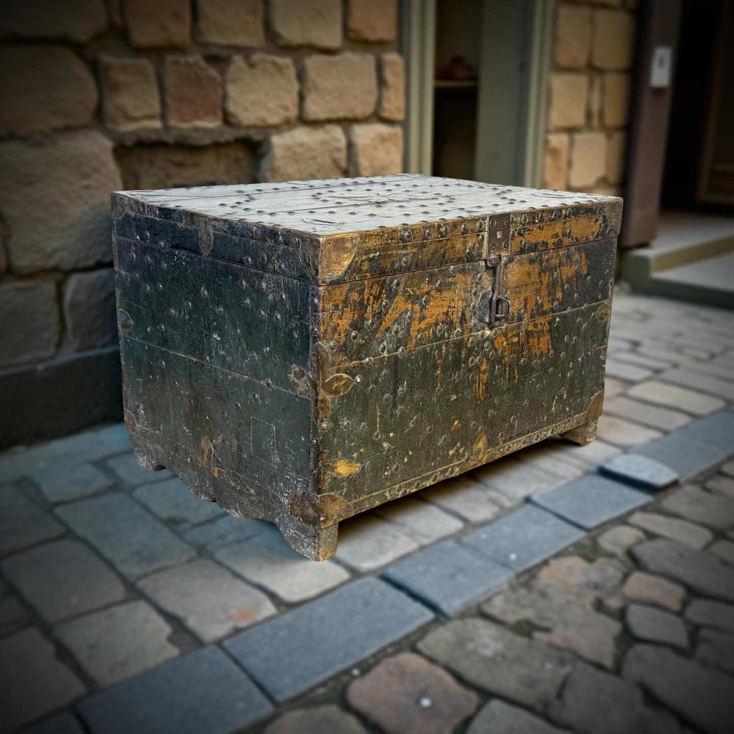 Dit handgemaakte kistje uit India straalt eenvoud en karakter uit. Met zijn primitieve vormgeving en verweerde uitstraling is elk exemplaar uniek en perfect als decoratief opbergstuk. met zijn koperen beslag schitterend