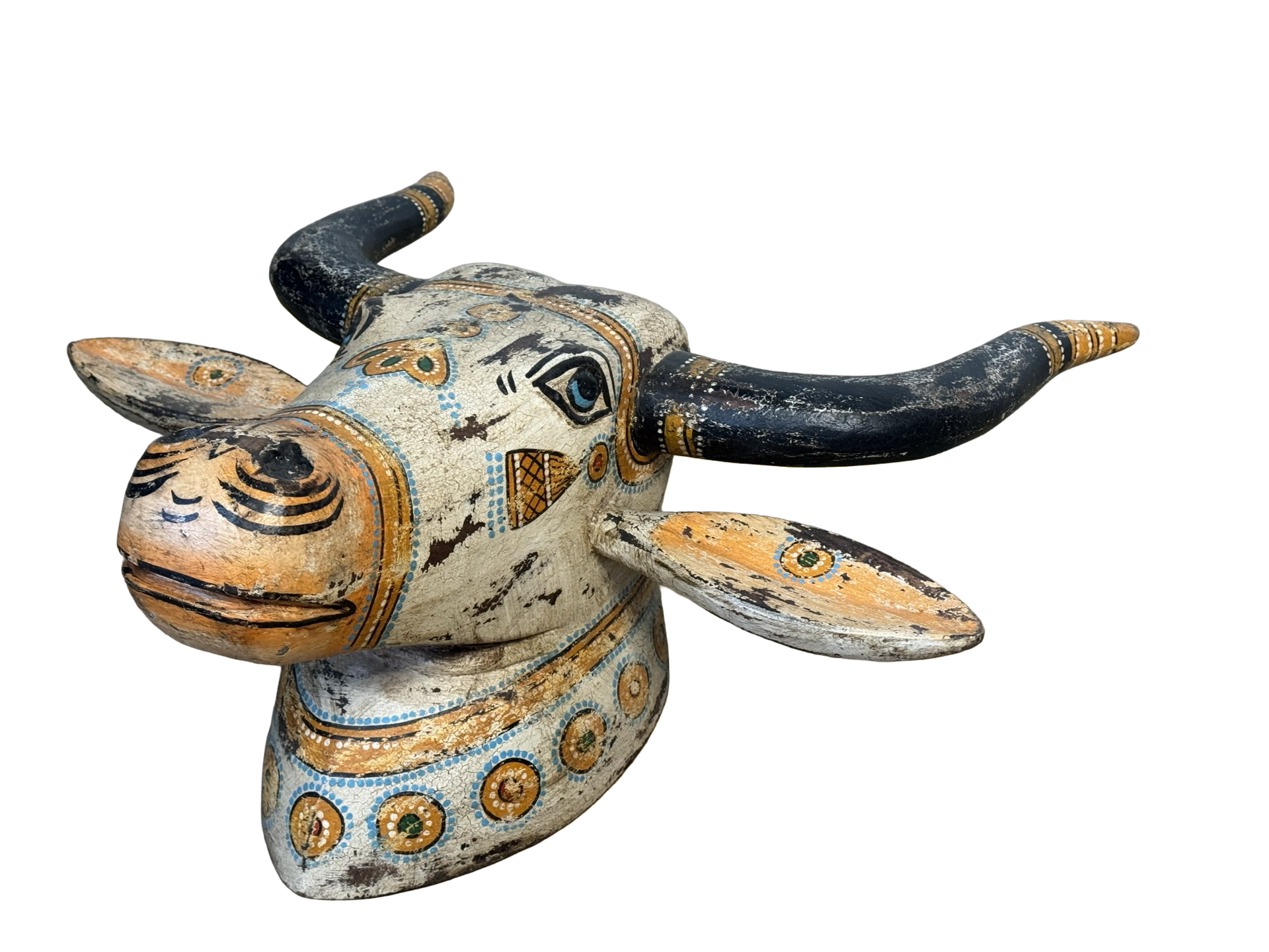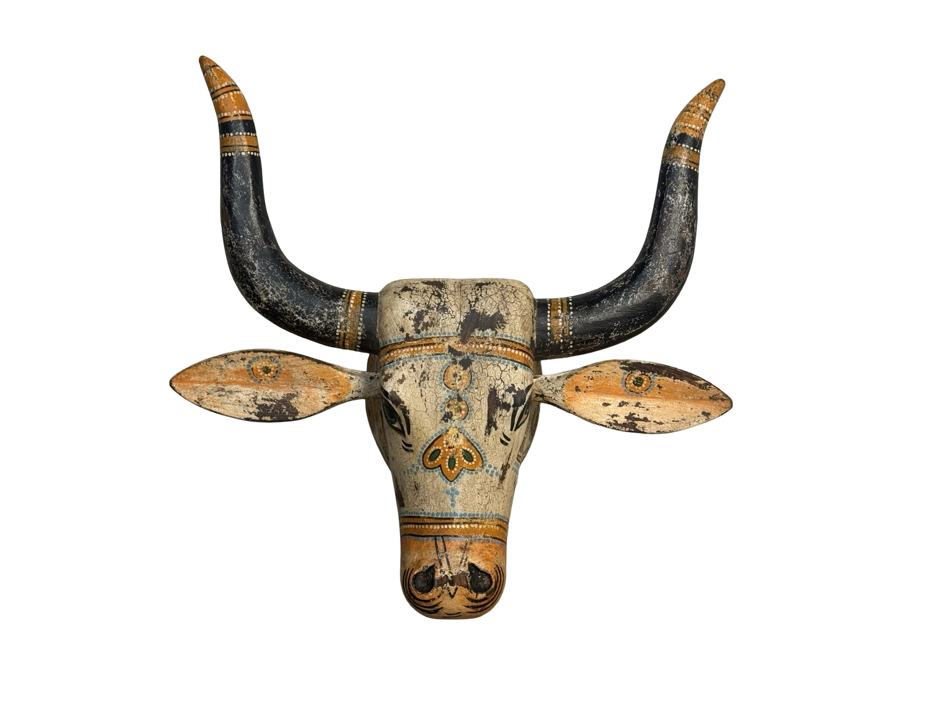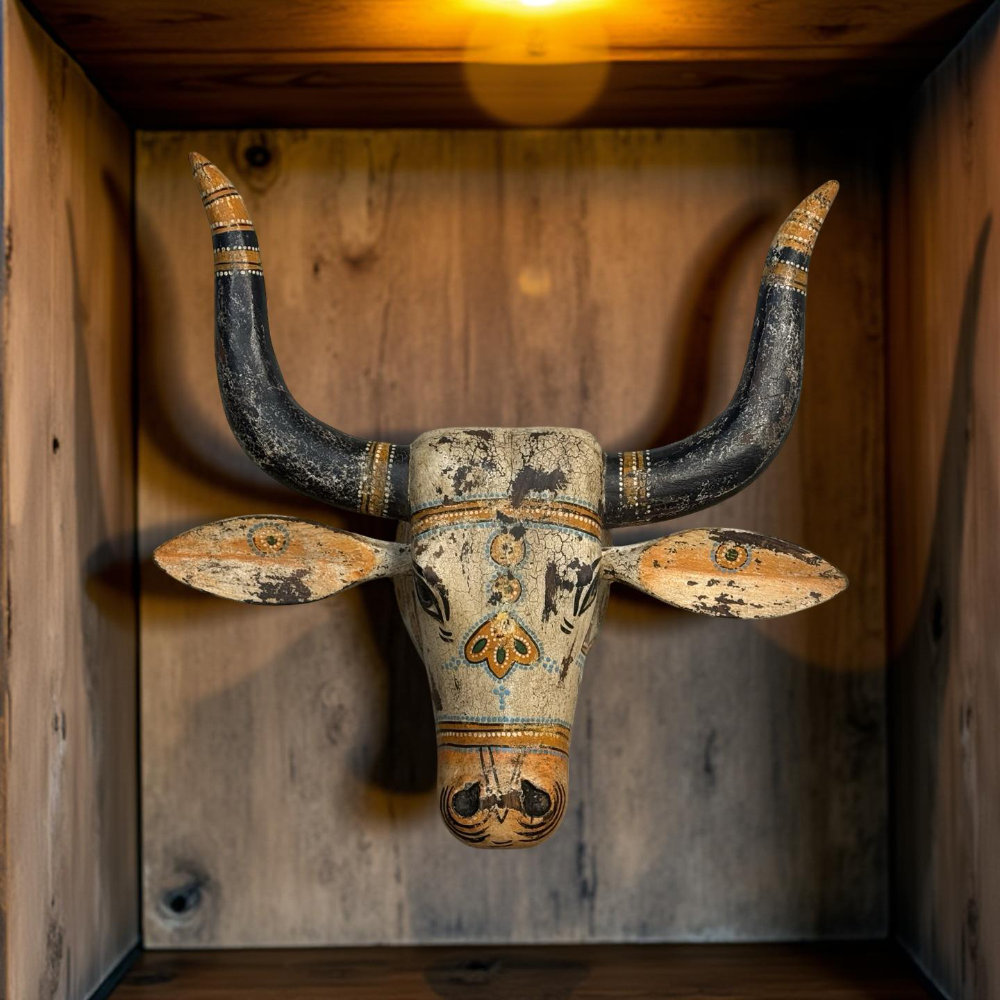 Deze prachtige Nandi kop is met de hand gemaakt in India en perfect als unieke wanddecoratie. Elk stuk is authentiek en vol karakter.