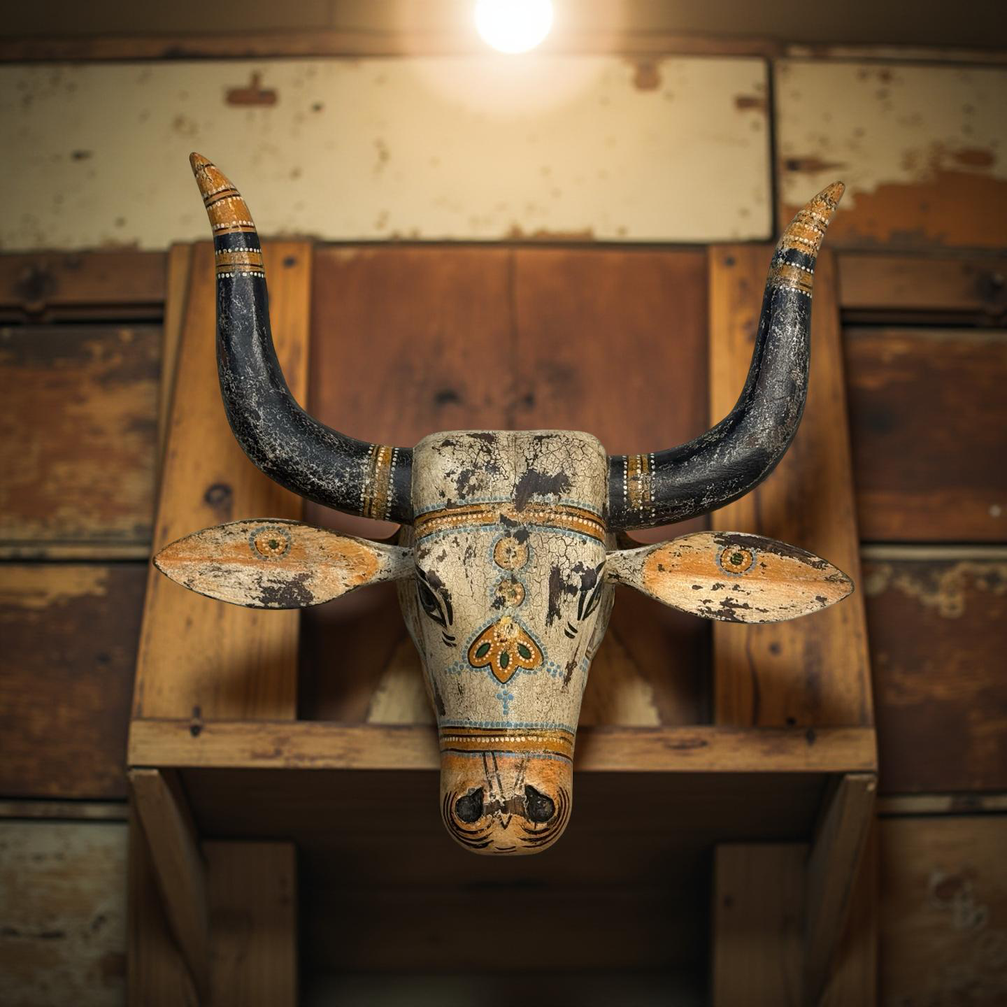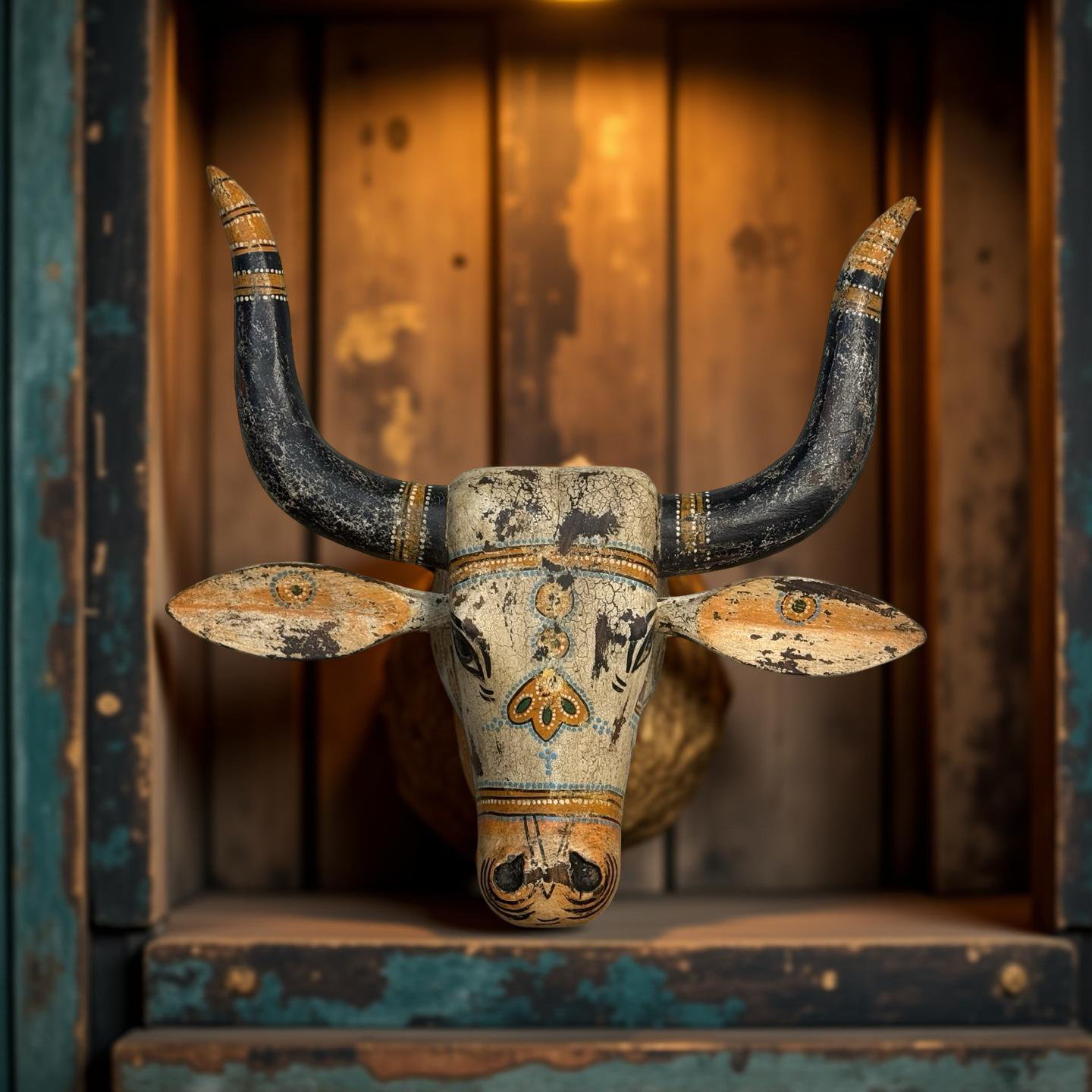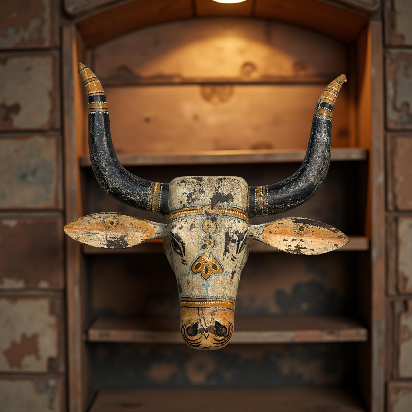 Deze prachtige Nandi kop is met de hand gemaakt in India en perfect als unieke wanddecoratie. Elk stuk is authentiek en vol karakter.