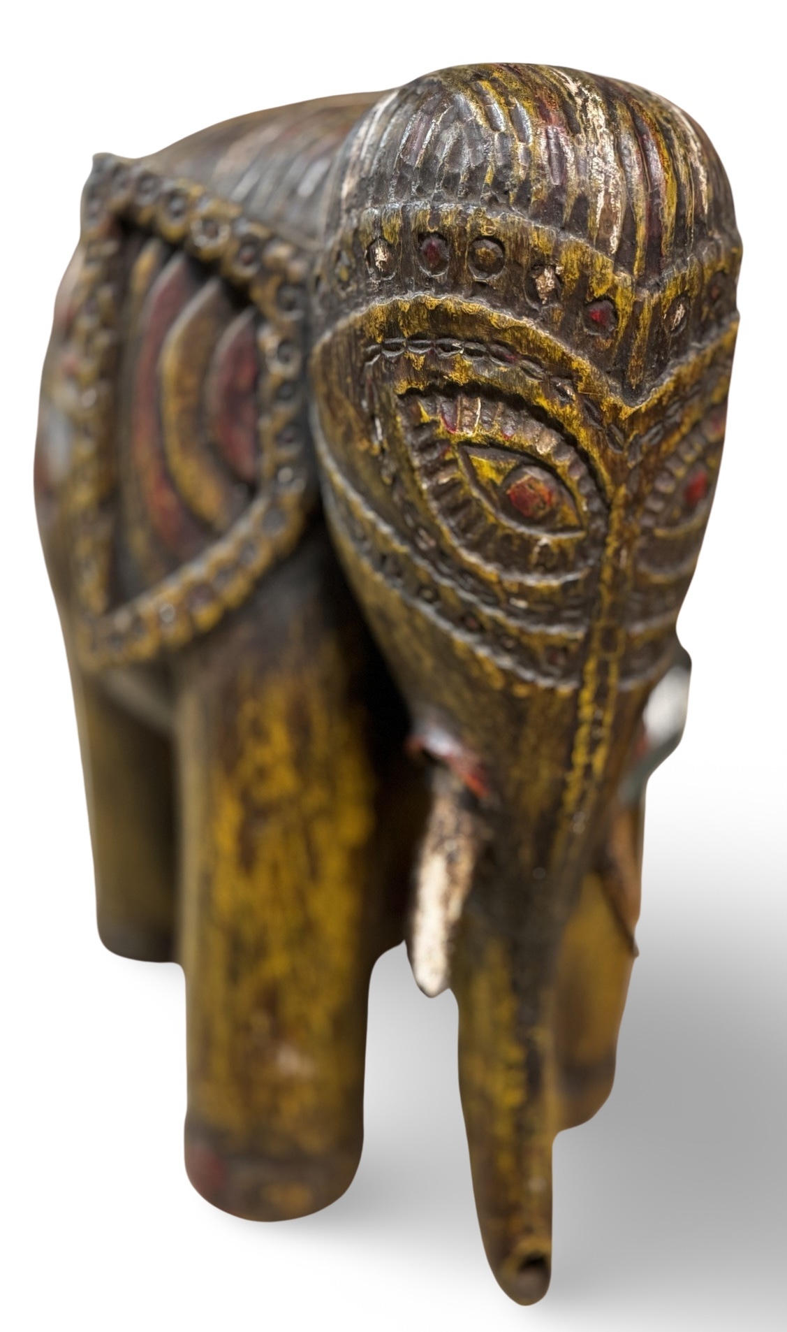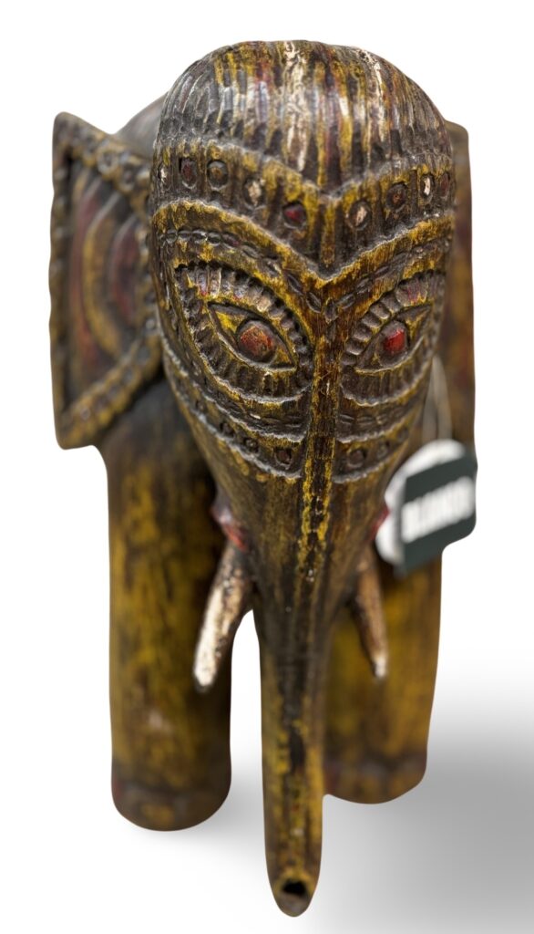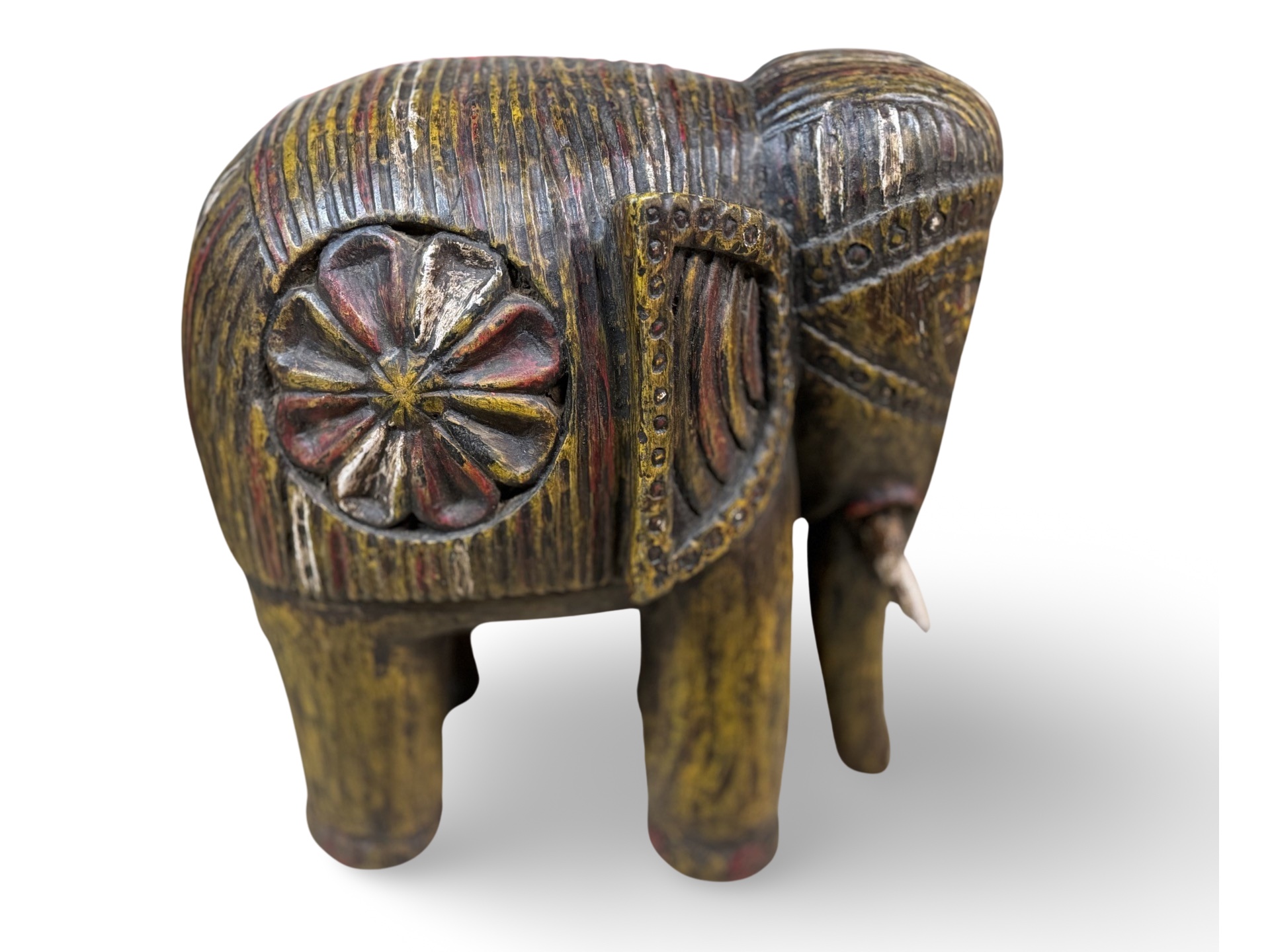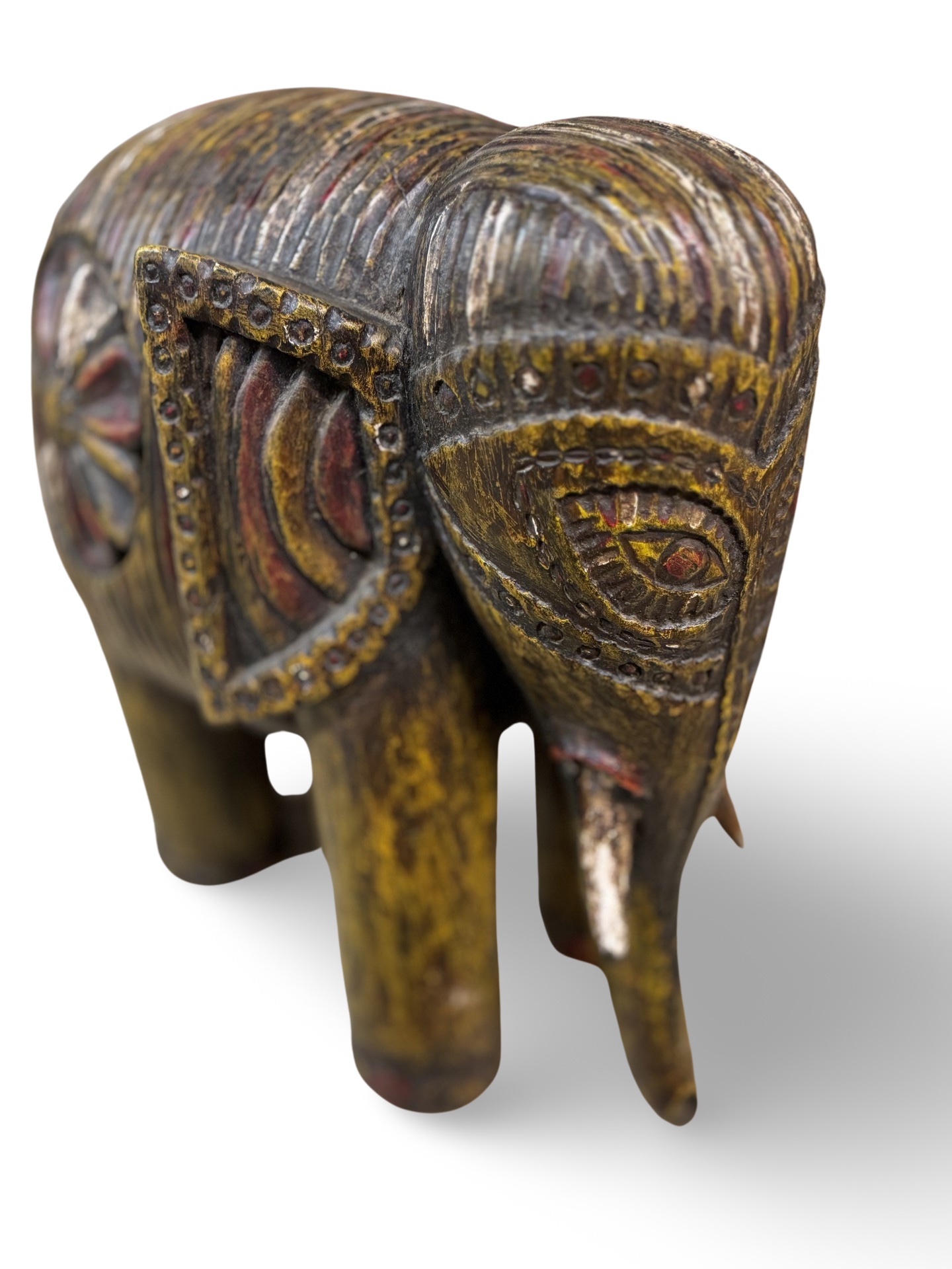 Houten olifant beschilderd uniek en mooie snijwerk.