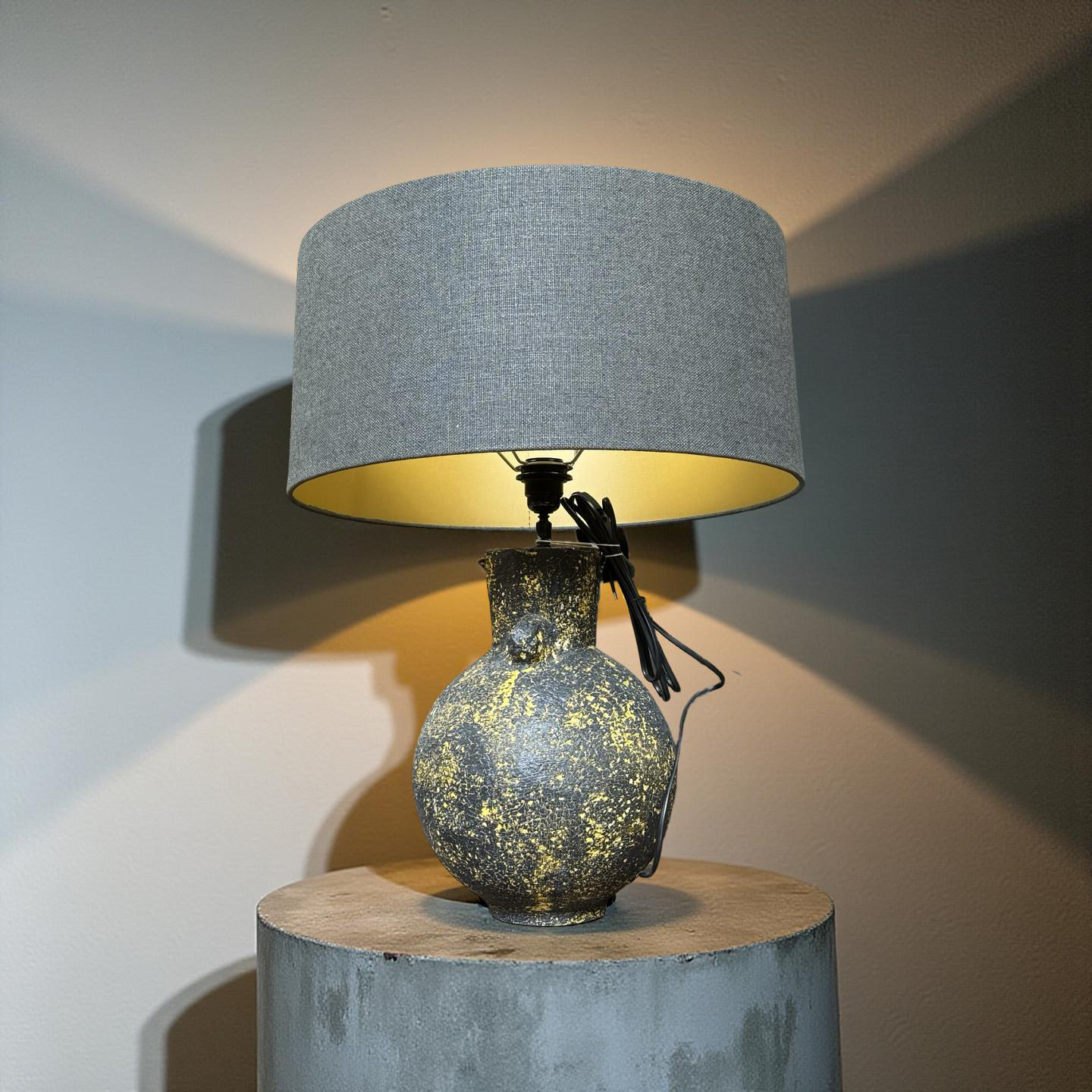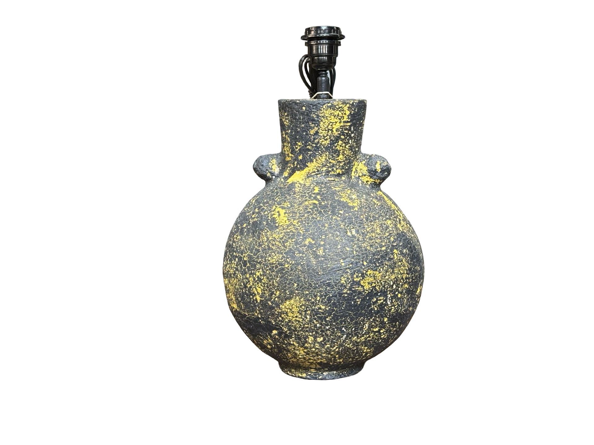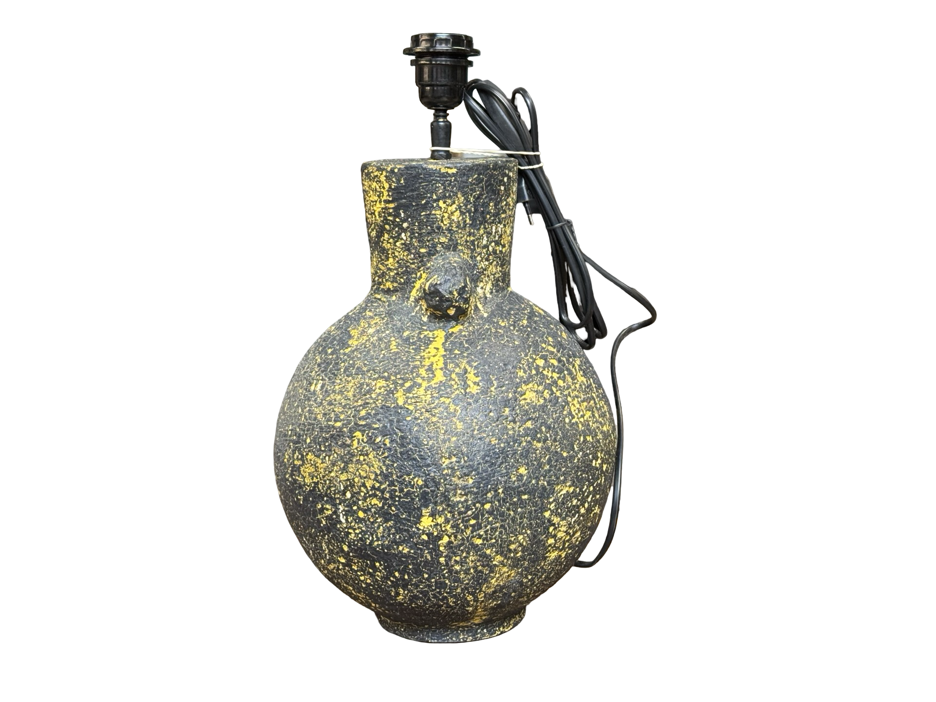 Een opvallende lampvoet met karakter. Handgemaakt van papier-maché in India, afgewerkt in zwart en geel. Elk stuk is uniek en brengt een kleurrijk en ambachtelijk accent in je interieur.