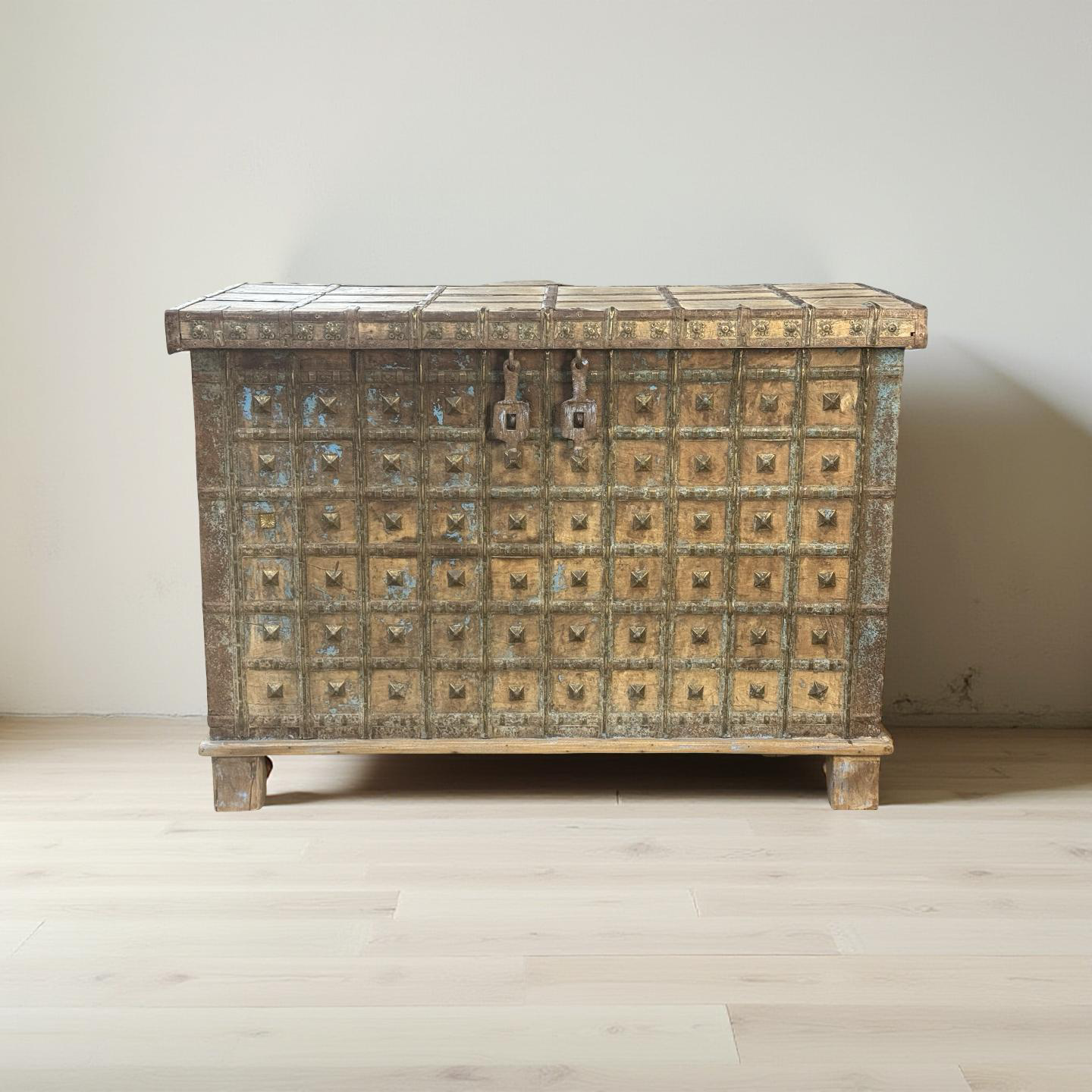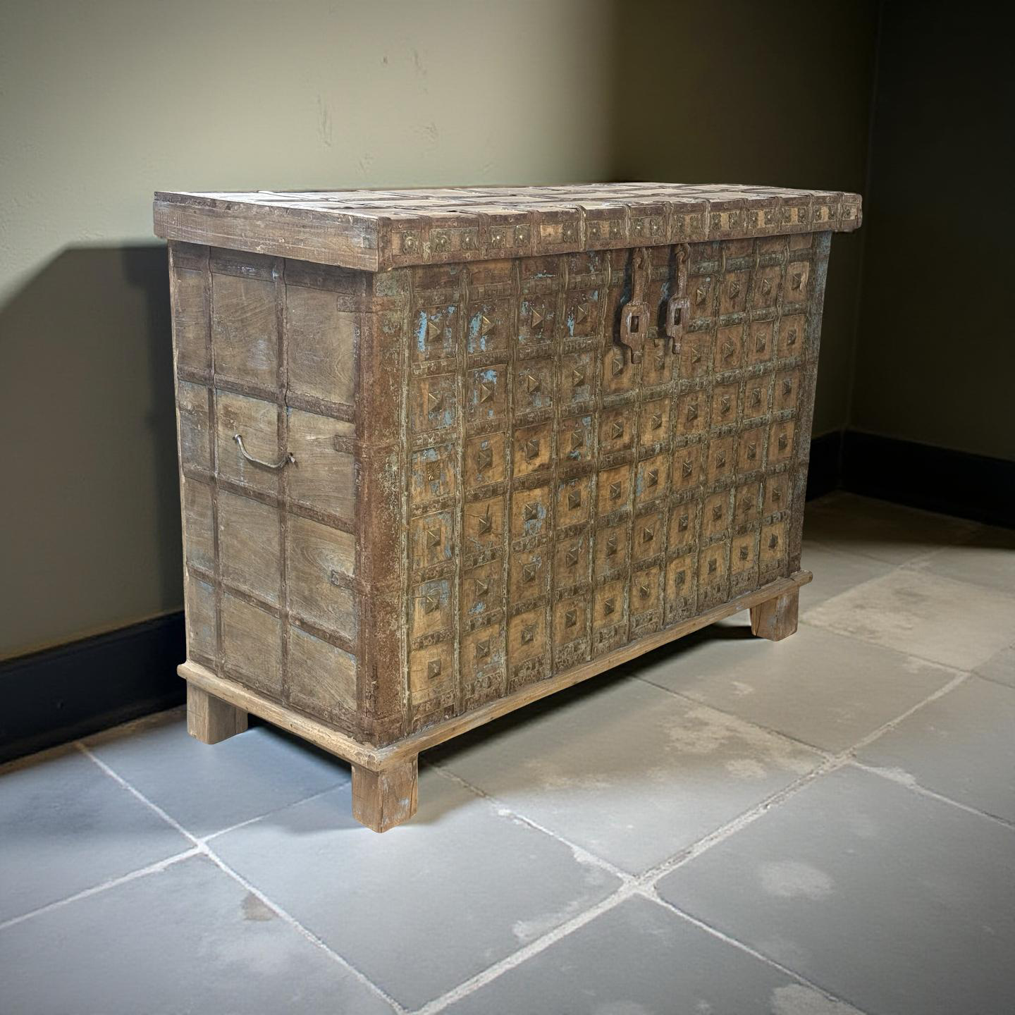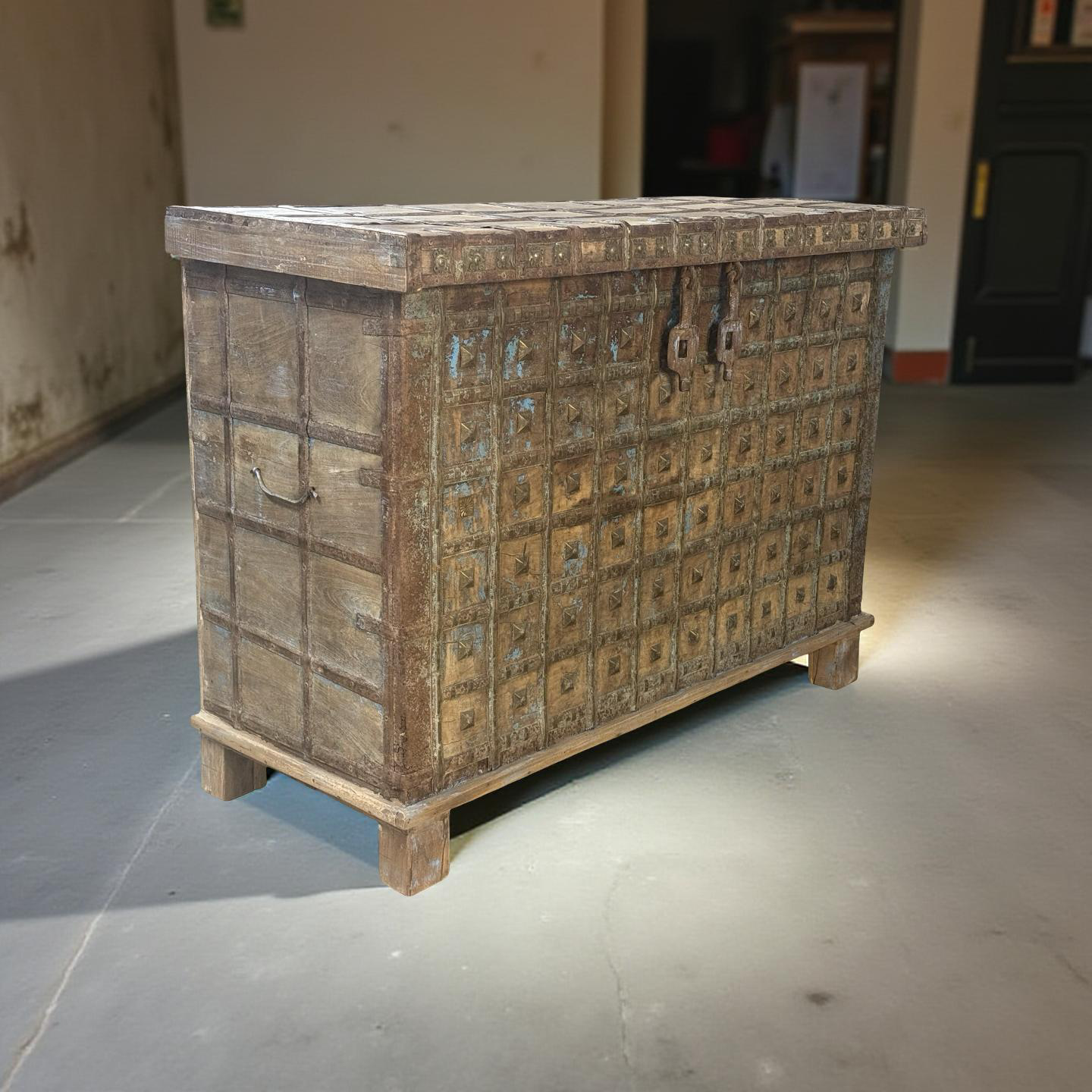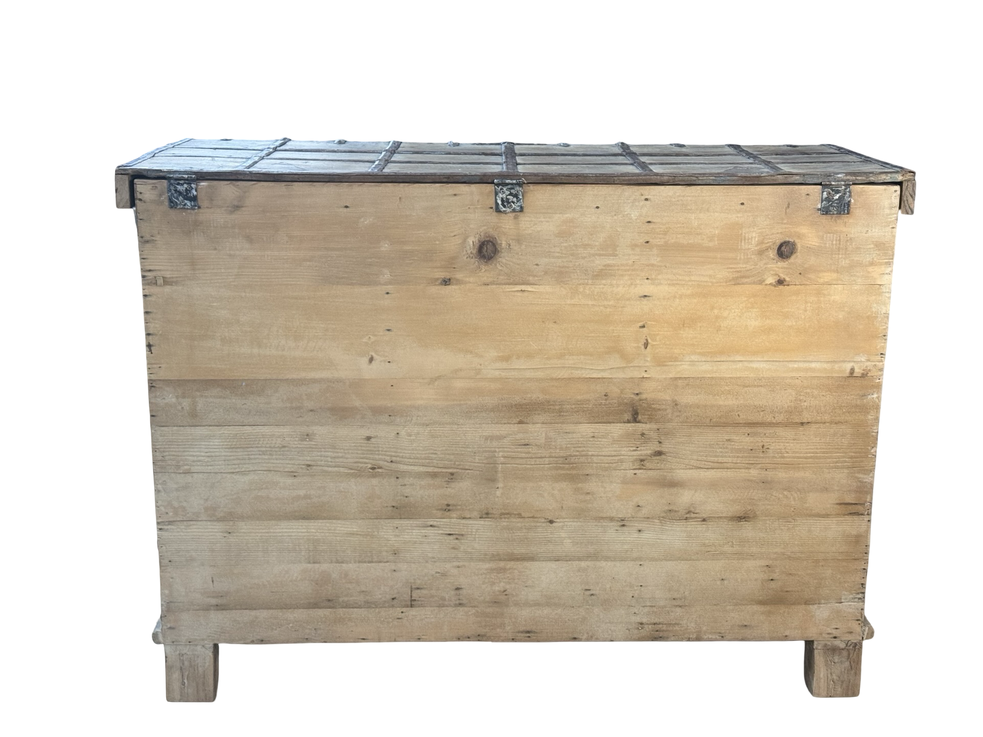 Voeg een vleugje ambacht en elegantie toe aan je interieur met deze prachtige, handgemaakte kist. Elke kist is uniek, met zorgvuldig uitgewerkt messing beslag dat zorgt voor een tijdloze uitstraling. Perfect voor het opbergen van dekens, kussens of andere waardevolle spullen, terwijl het een statement piece in je woonkamer blijft. Duurzaam, stijlvol en met liefde gemaakt – een echte blikvanger voor elk huis.