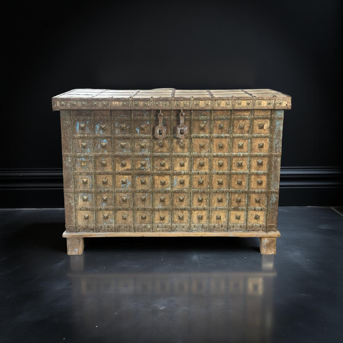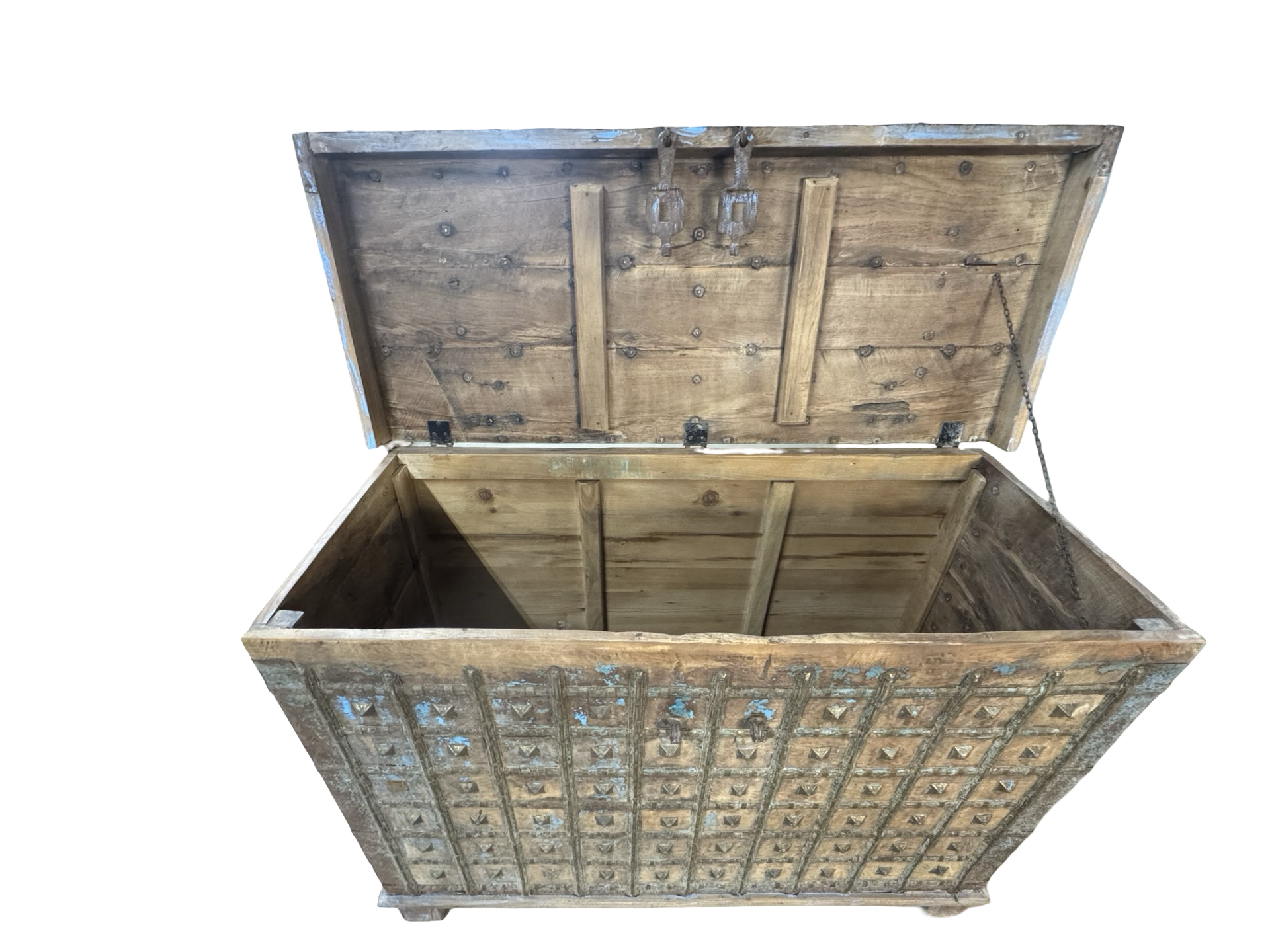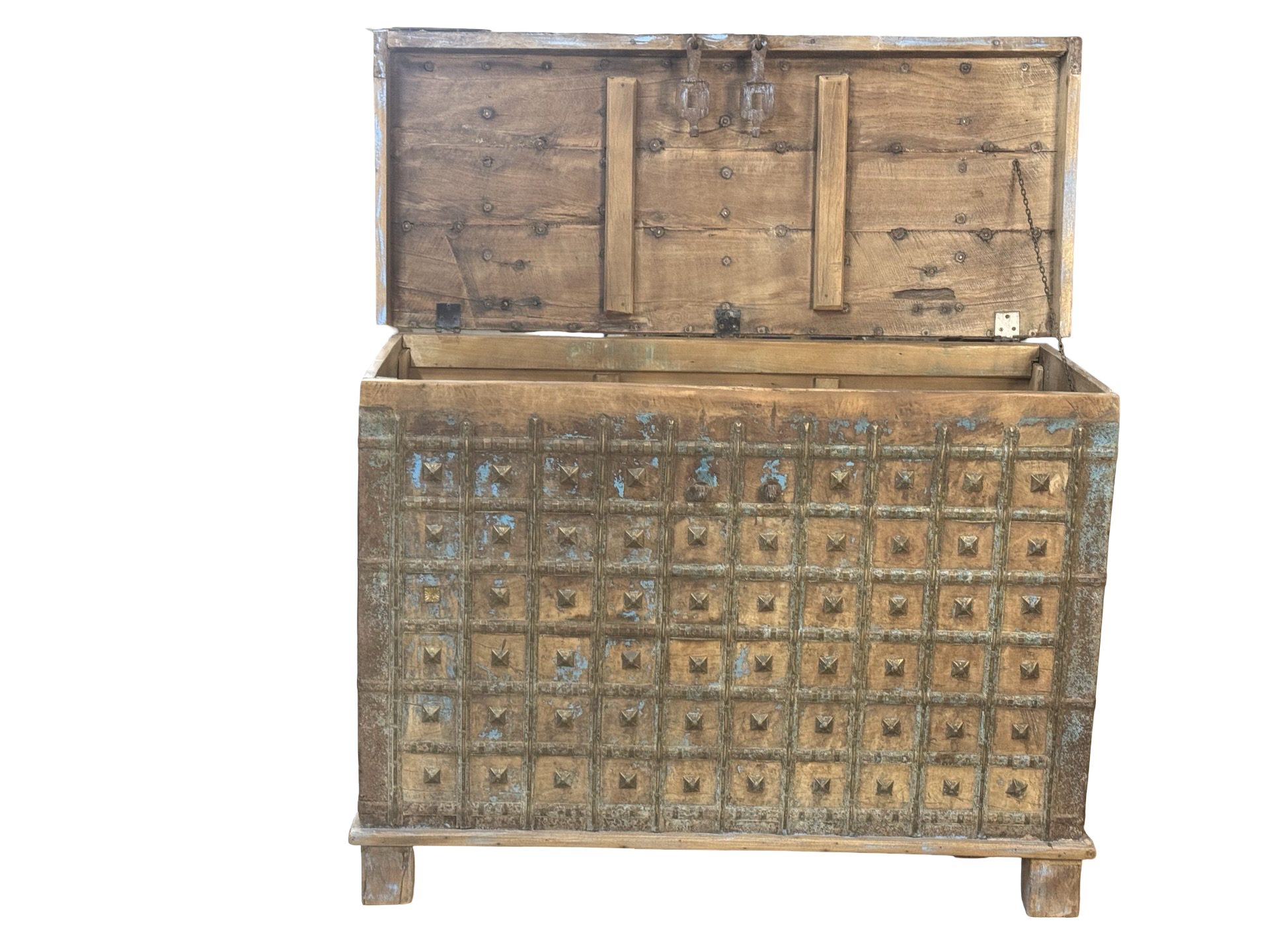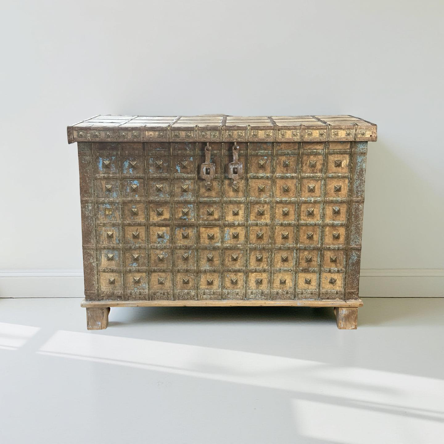Voeg een vleugje ambacht en elegantie toe aan je interieur met deze prachtige, handgemaakte kist. Elke kist is uniek, met zorgvuldig uitgewerkt messing beslag dat zorgt voor een tijdloze uitstraling. Perfect voor het opbergen van dekens, kussens of andere waardevolle spullen, terwijl het een statement piece in je woonkamer blijft. Duurzaam, stijlvol en met liefde gemaakt – een echte blikvanger voor elk huis.