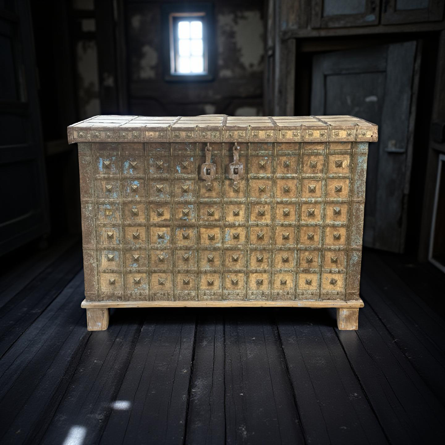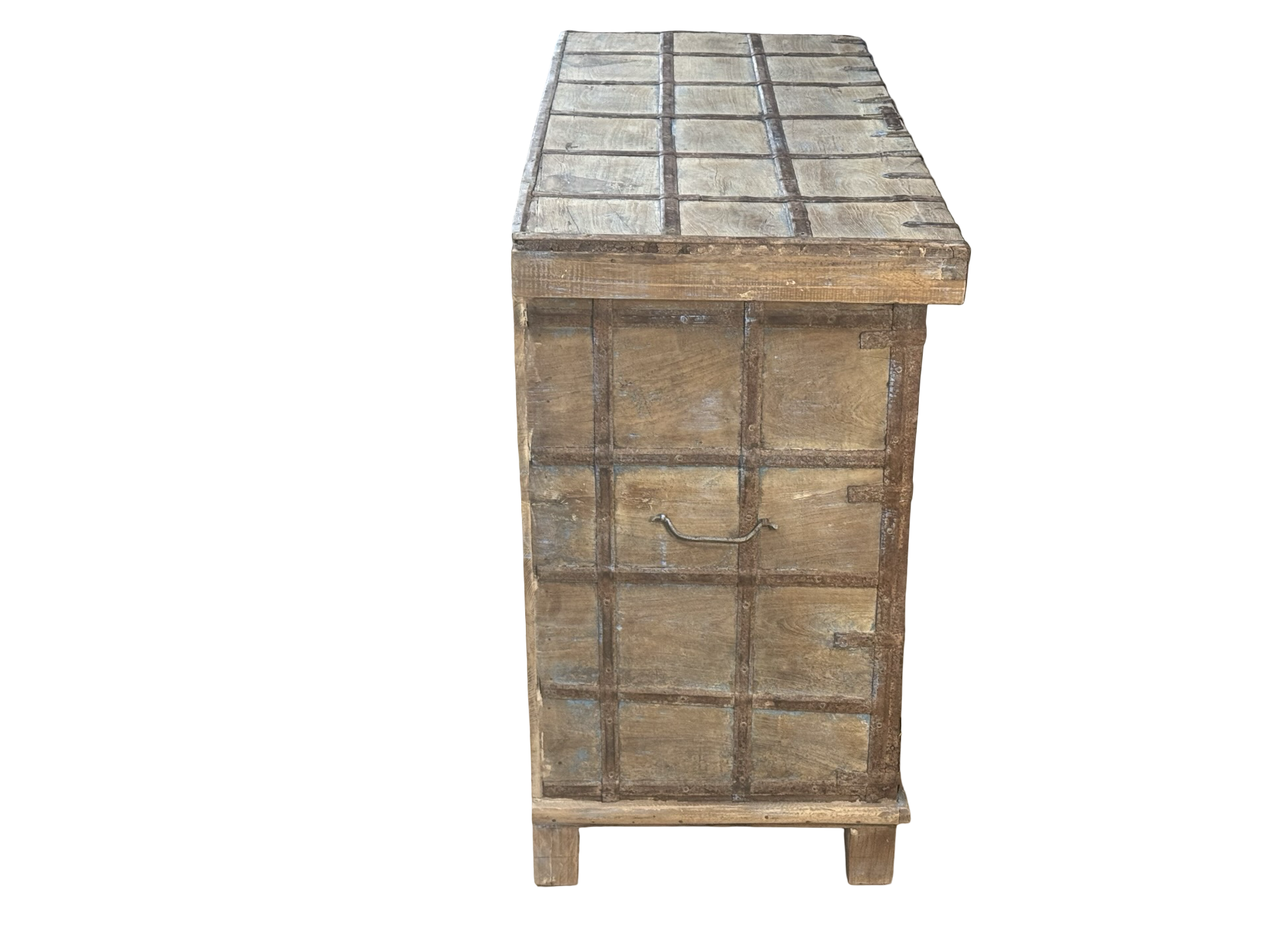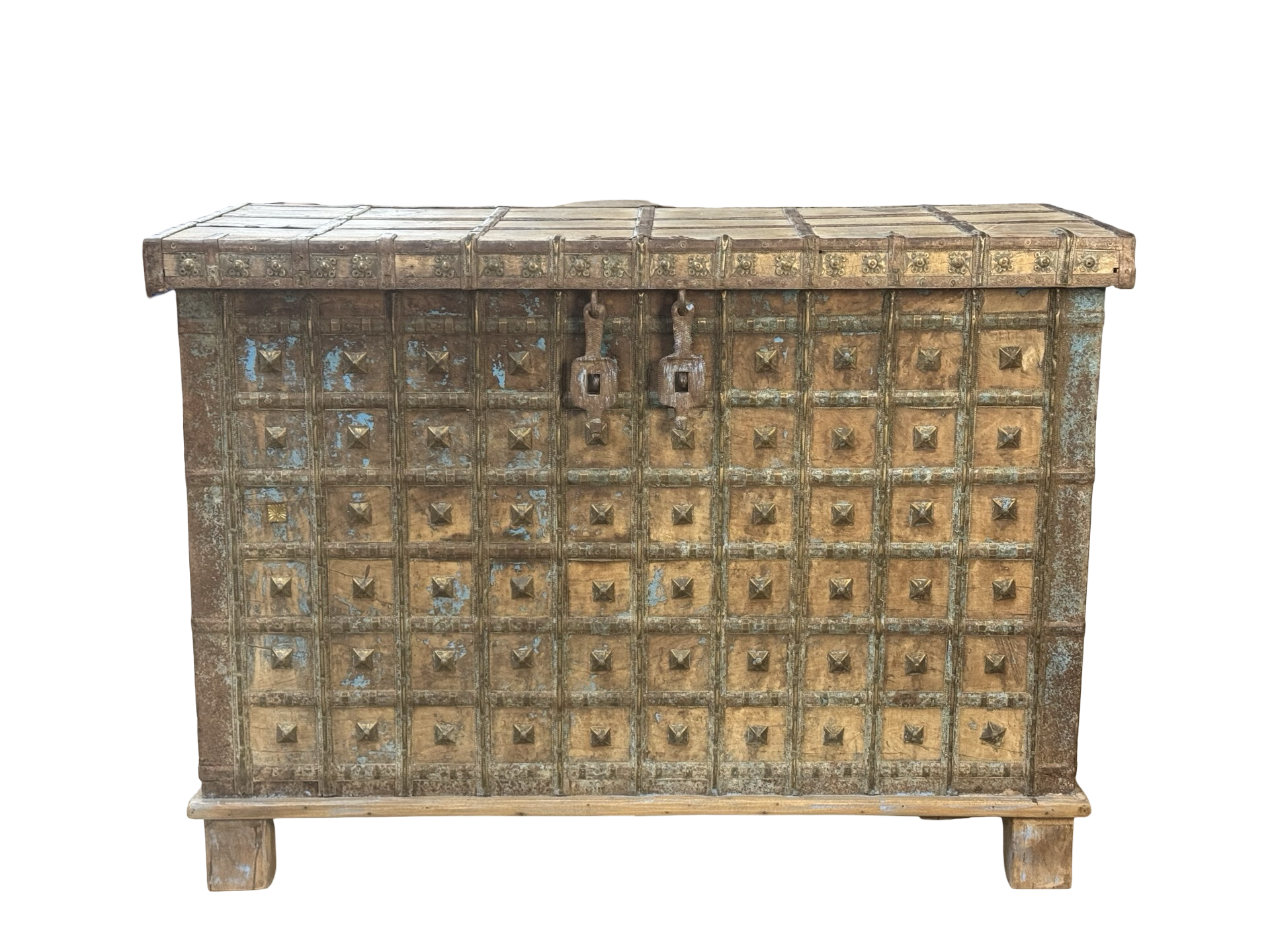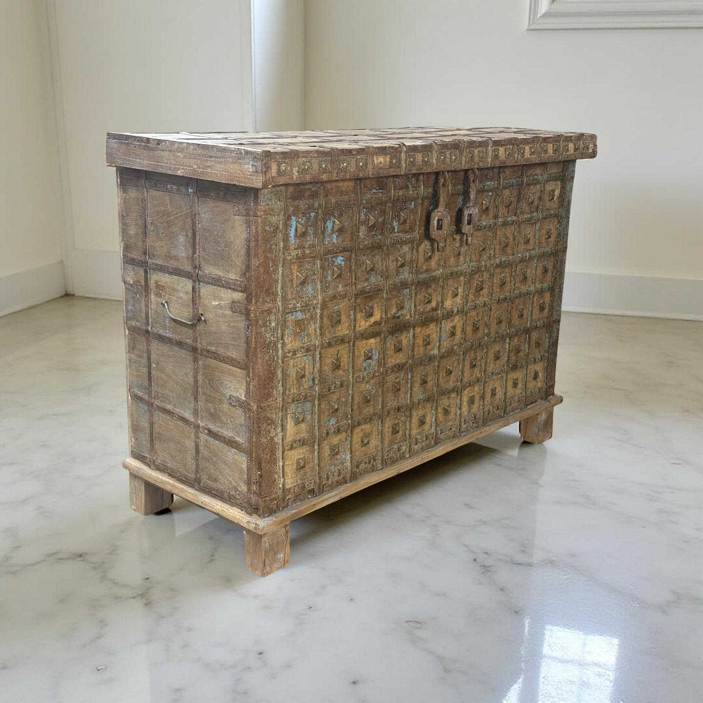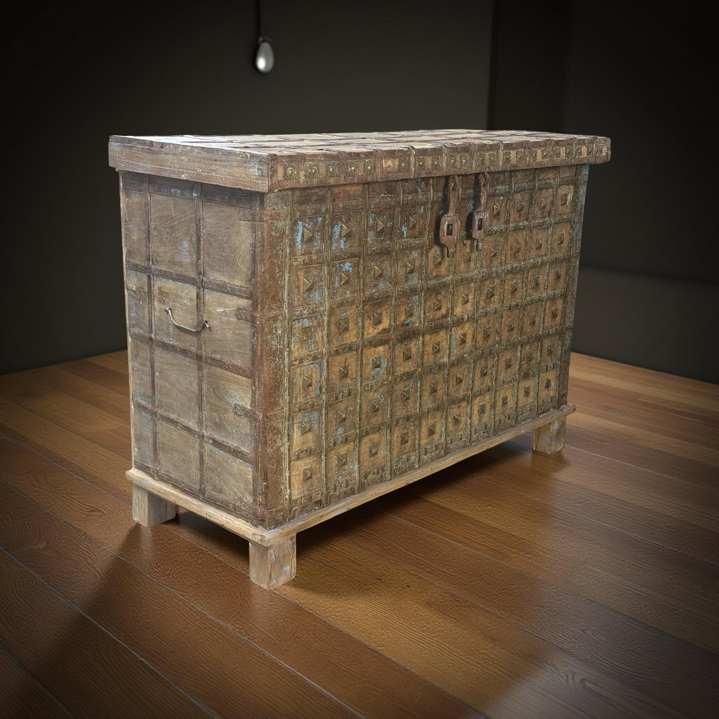 Voeg een vleugje ambacht en elegantie toe aan je interieur met deze prachtige, handgemaakte kist. Elke kist is uniek, met zorgvuldig uitgewerkt messing beslag dat zorgt voor een tijdloze uitstraling. Perfect voor het opbergen van dekens, kussens of andere waardevolle spullen, terwijl het een statement piece in je woonkamer blijft. Duurzaam, stijlvol en met liefde gemaakt – een echte blikvanger voor elk huis.