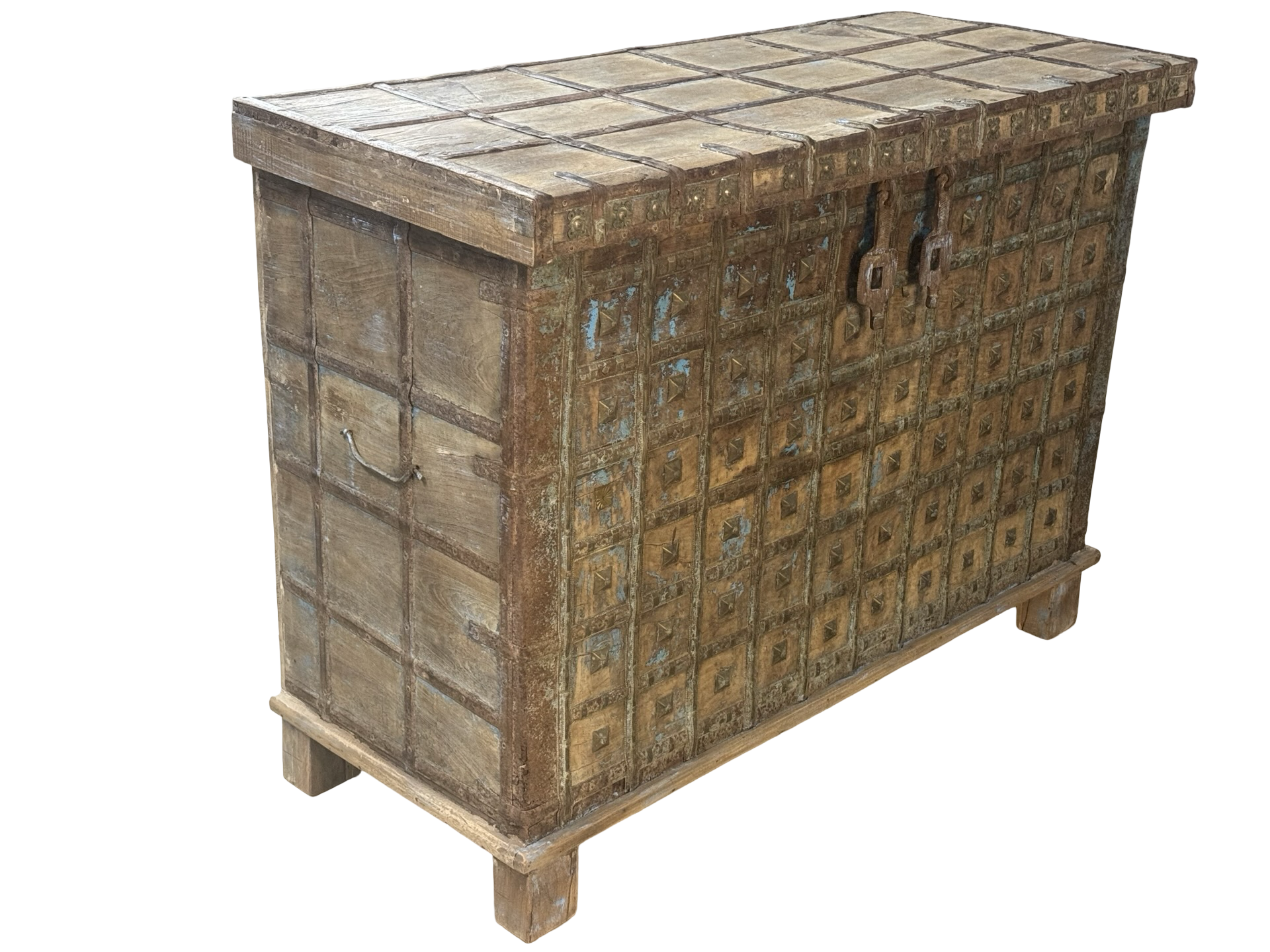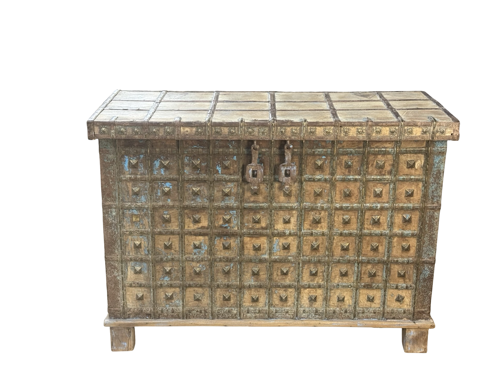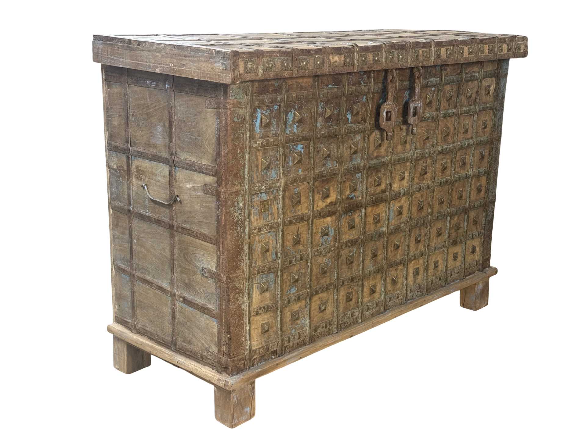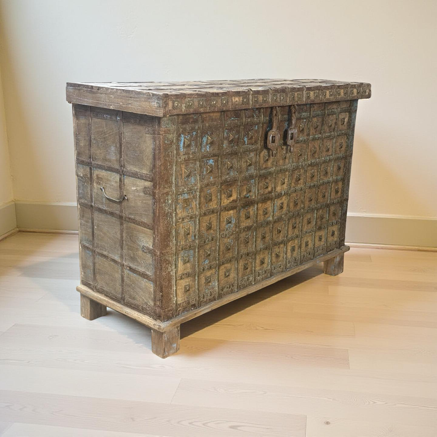 Voeg een vleugje ambacht en elegantie toe aan je interieur met deze prachtige, handgemaakte kist. Elke kist is uniek, met zorgvuldig uitgewerkt messing beslag dat zorgt voor een tijdloze uitstraling. Perfect voor het opbergen van dekens, kussens of andere waardevolle spullen, terwijl het een statement piece in je woonkamer blijft. Duurzaam, stijlvol en met liefde gemaakt – een echte blikvanger voor elk huis.