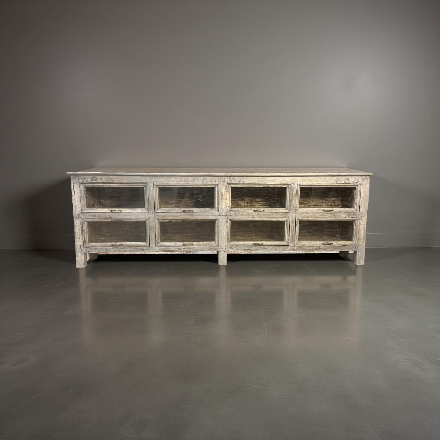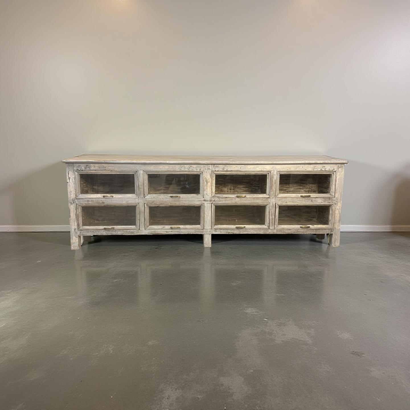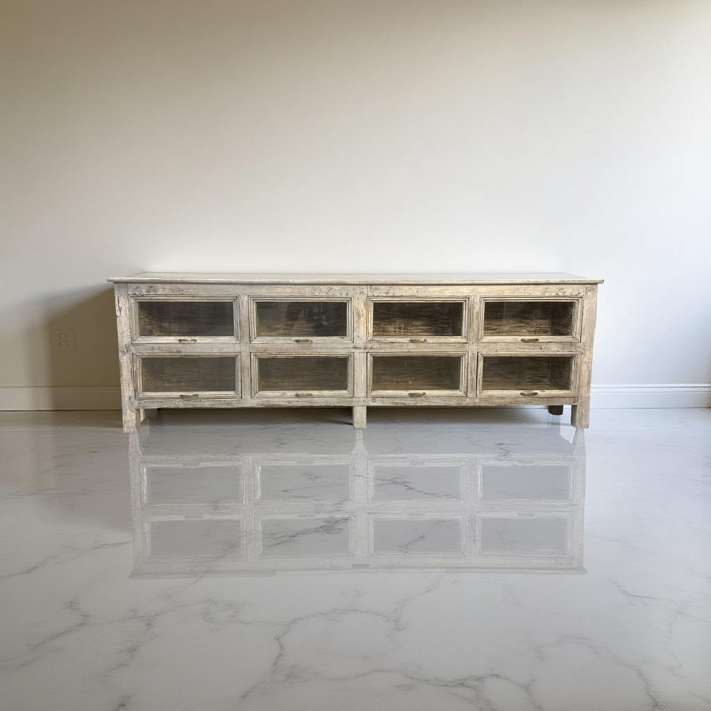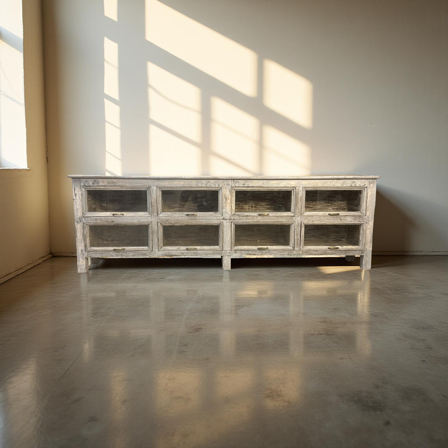 Breng een vleugje exotische charme in je interieur met dit prachtige handgemaakte dressoir uit India. Het meubel is een waar kunstwerk – volledig uniek, met 8 ruime lades . De witte afwerking geeft het dressoir een frisse, elegante uitstraling die in elk interieur past, van landelijk tot modern.