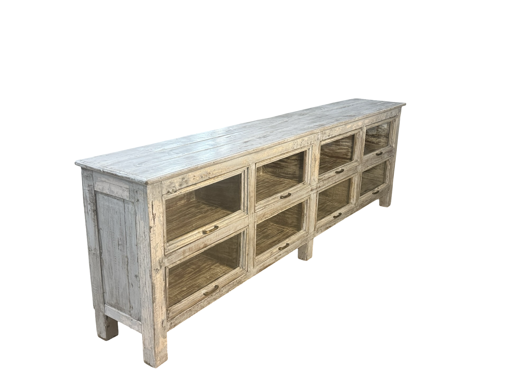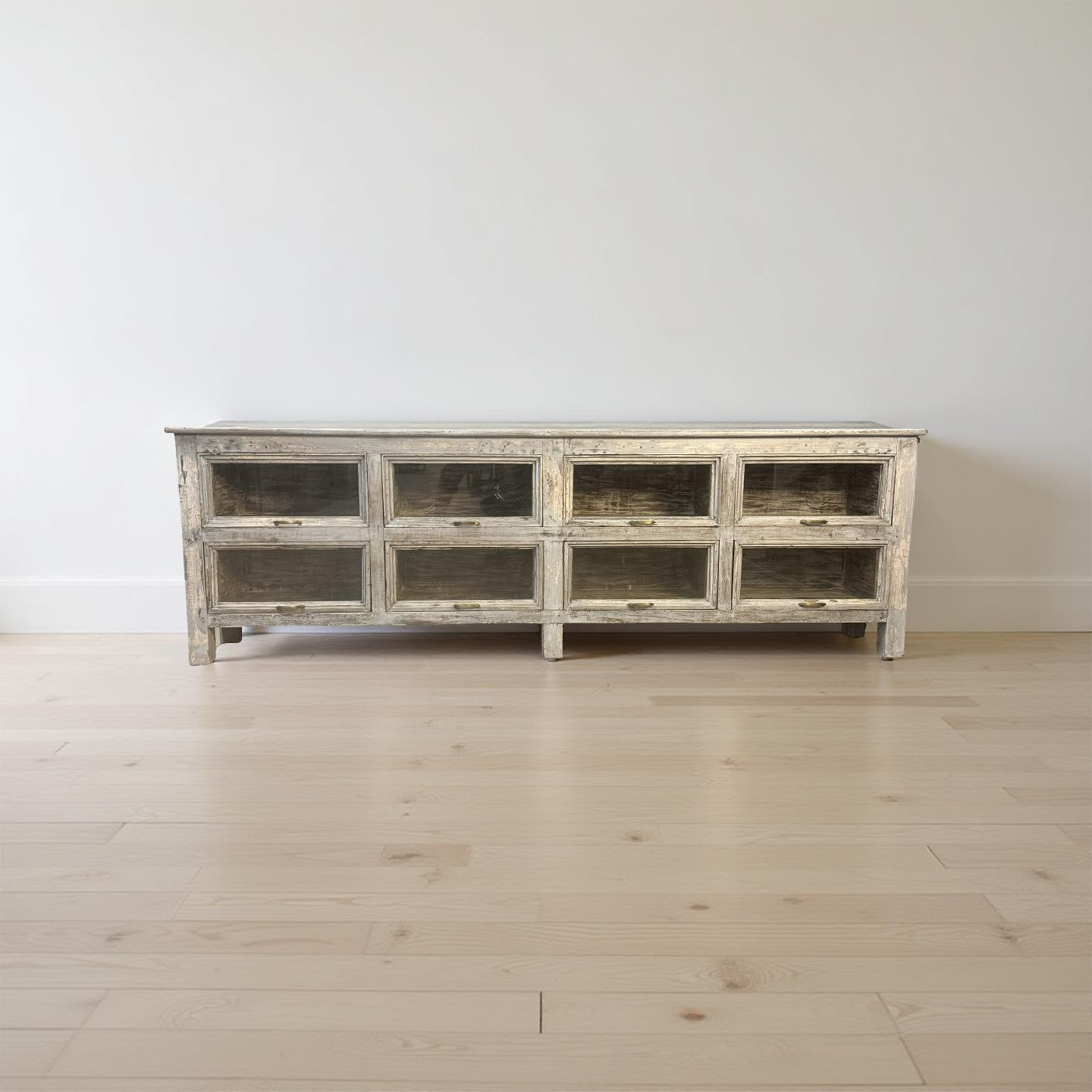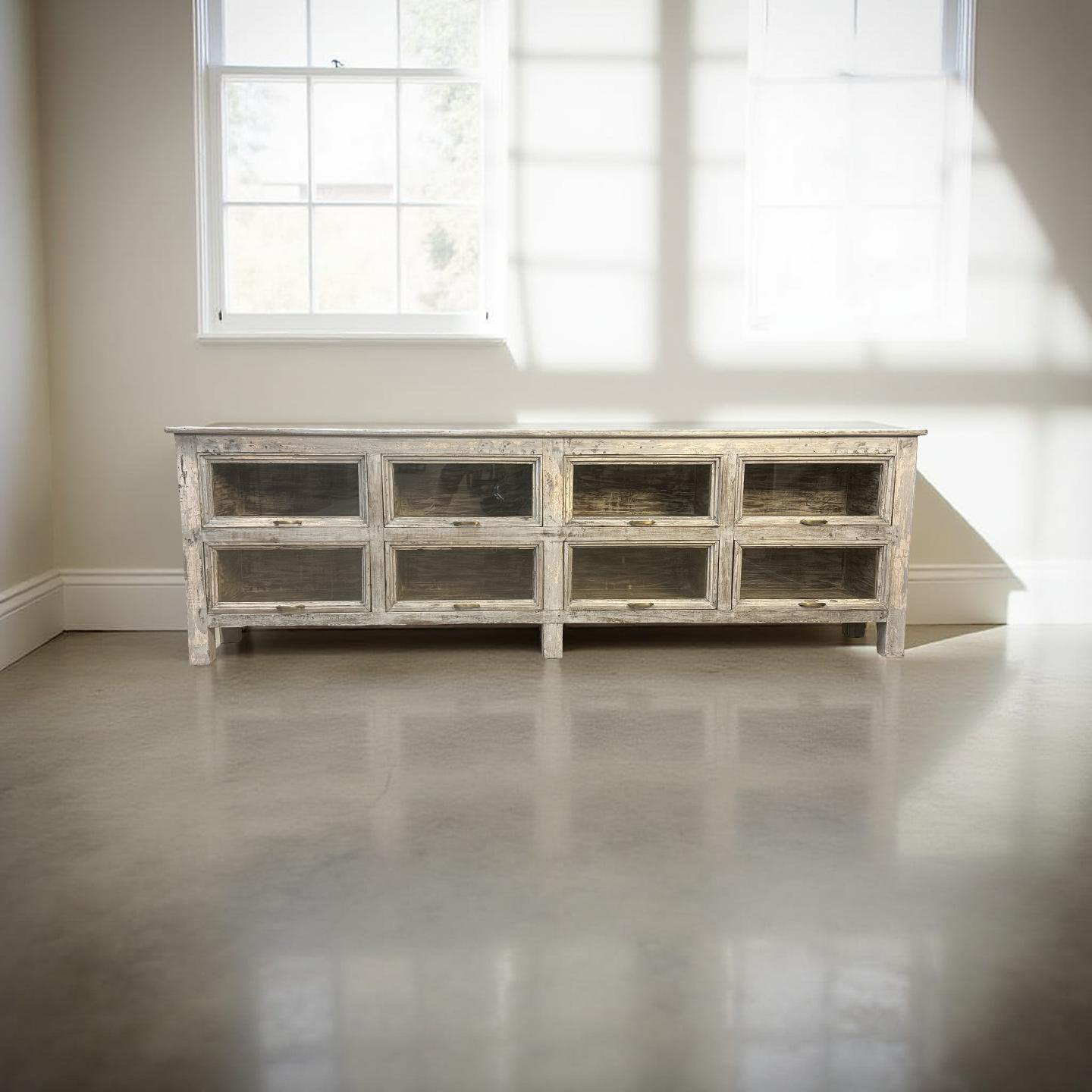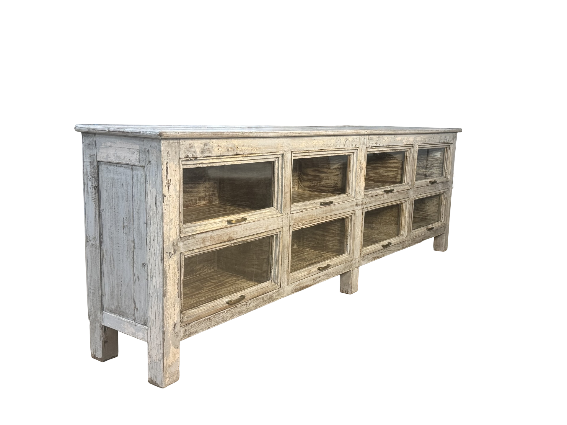 Breng een vleugje exotische charme in je interieur met dit prachtige handgemaakte dressoir uit India. Het meubel is een waar kunstwerk – volledig uniek, met 8 ruime lades . De witte afwerking geeft het dressoir een frisse, elegante uitstraling die in elk interieur past, van landelijk tot modern.