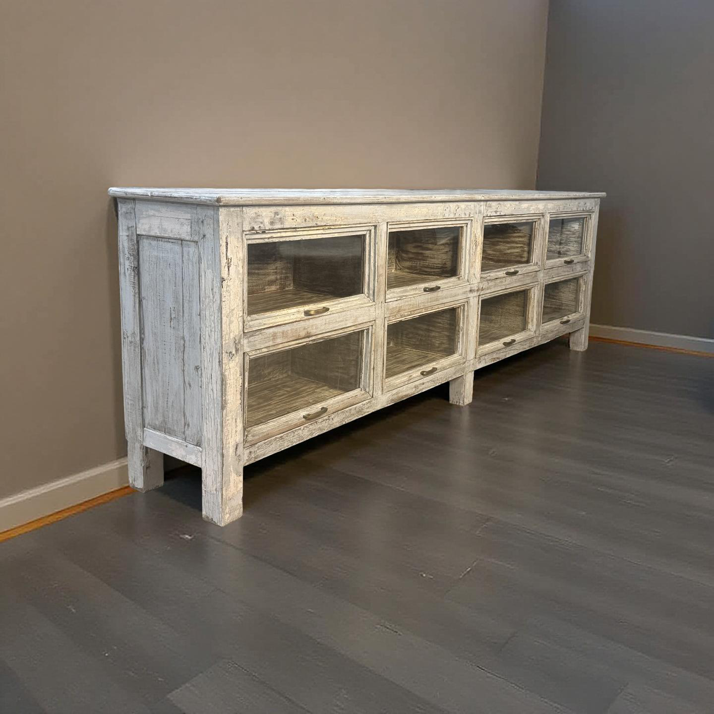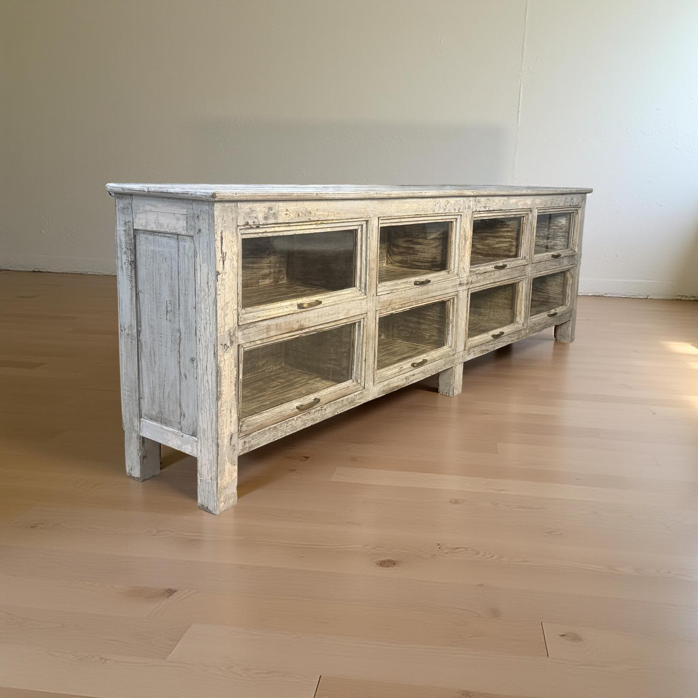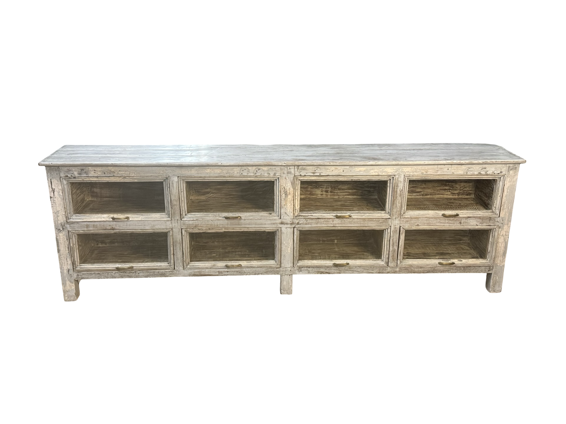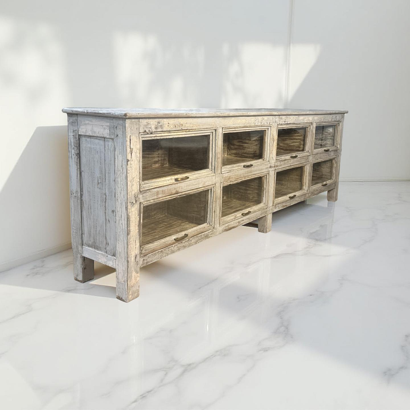 Breng een vleugje exotische charme in je interieur met dit prachtige handgemaakte dressoir uit India. Het meubel is een waar kunstwerk – volledig uniek, met 8 ruime lades . De witte afwerking geeft het dressoir een frisse, elegante uitstraling die in elk interieur past, van landelijk tot modern.